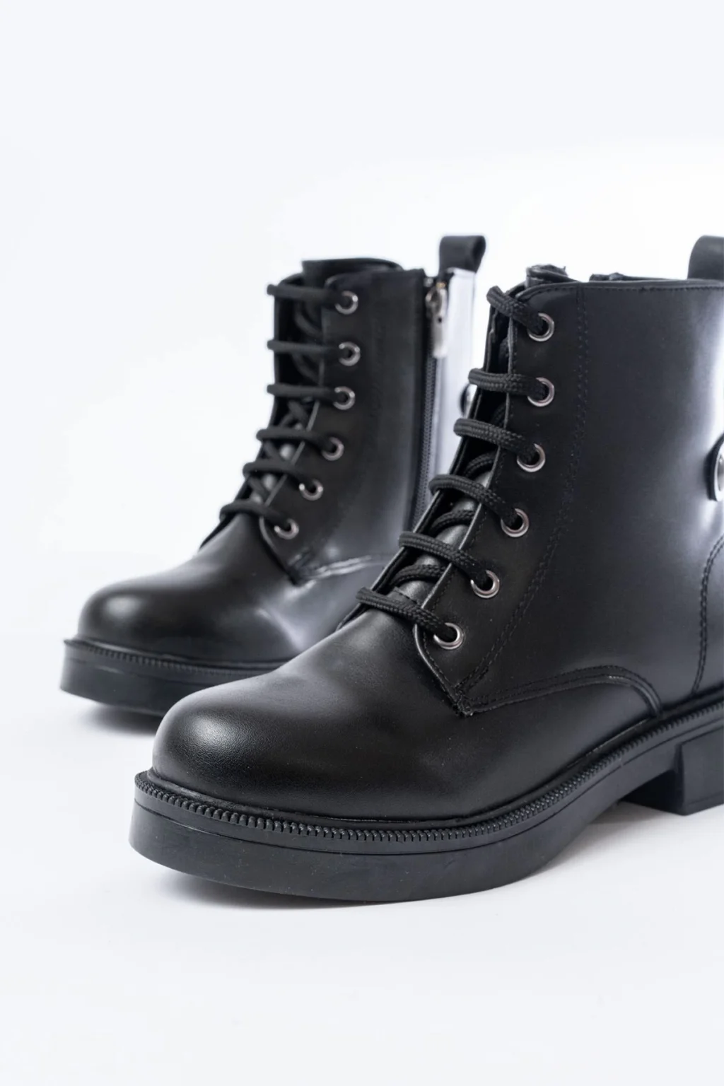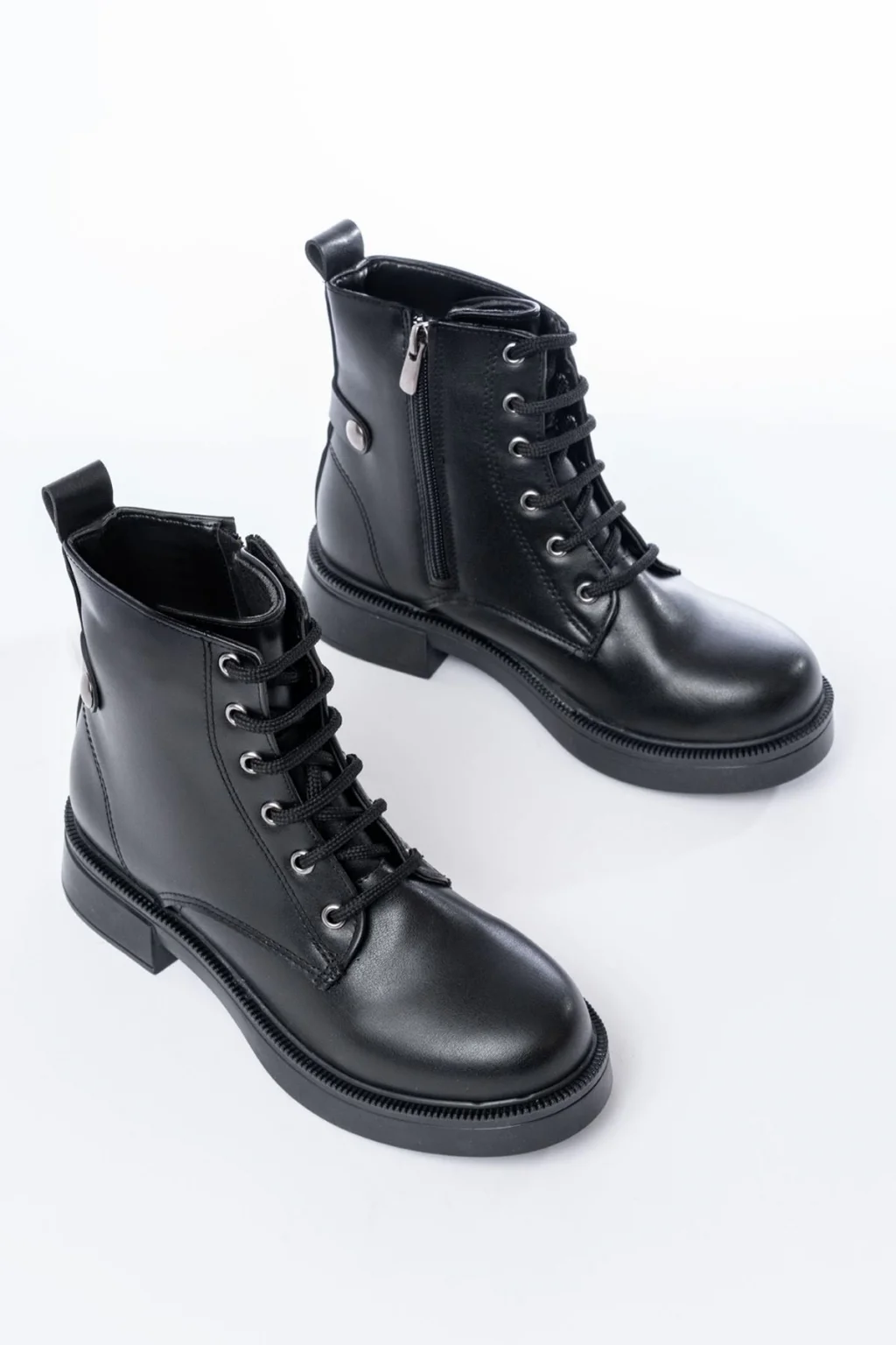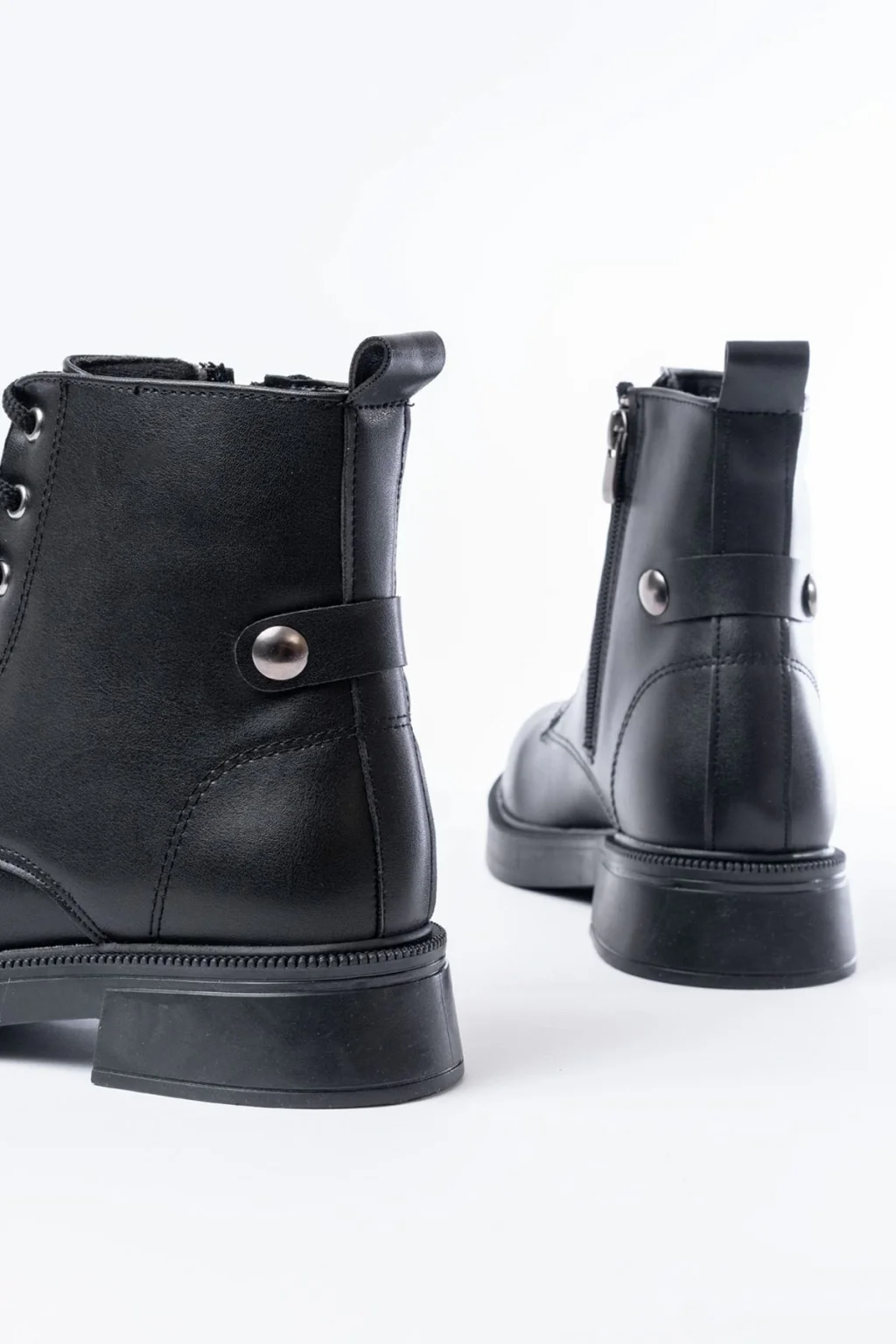 02-02 Siyah Taş Aksesuarlı Lastikli Günlük Kadın Bot