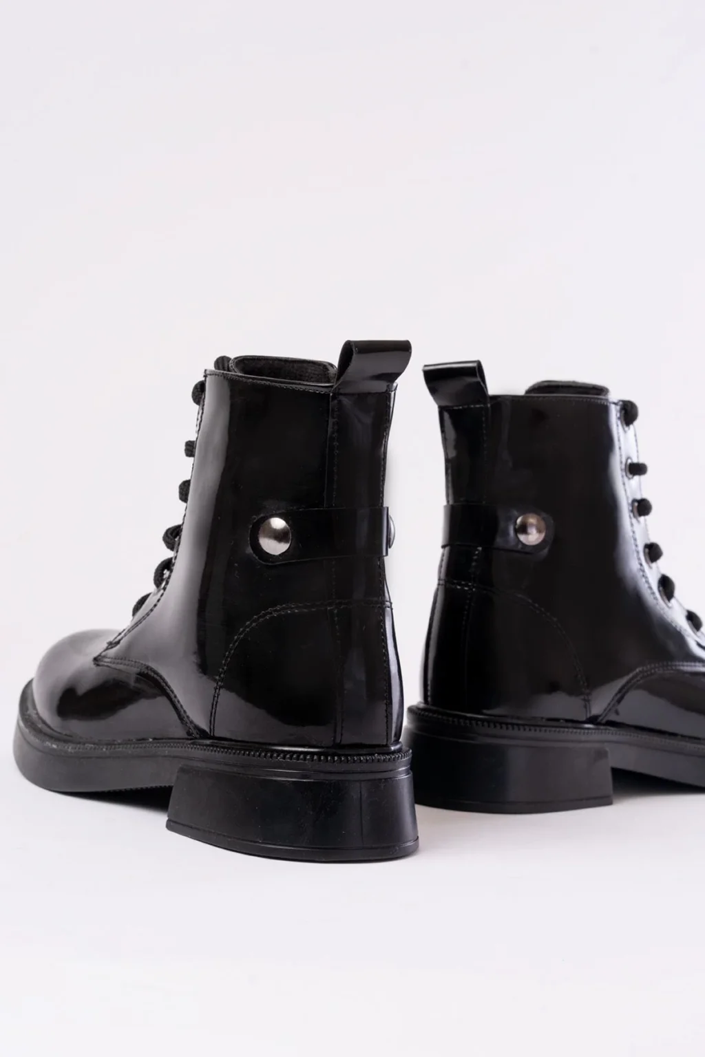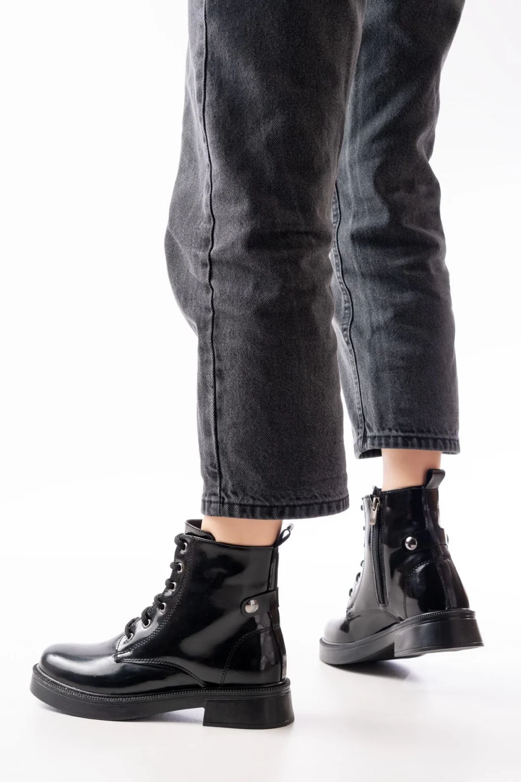 02-02 Siyah Taş Aksesuarlı Lastikli Günlük Kadın Bot
