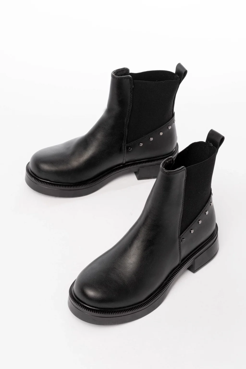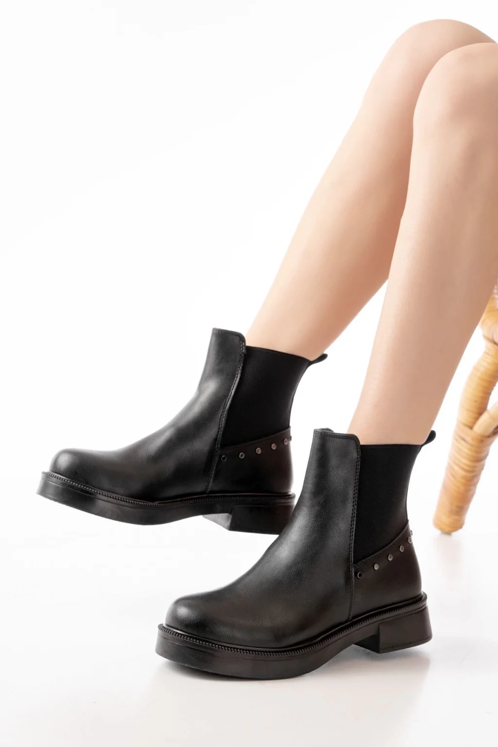 02-02 Siyah Taş Aksesuarlı Lastikli Günlük Kadın Bot