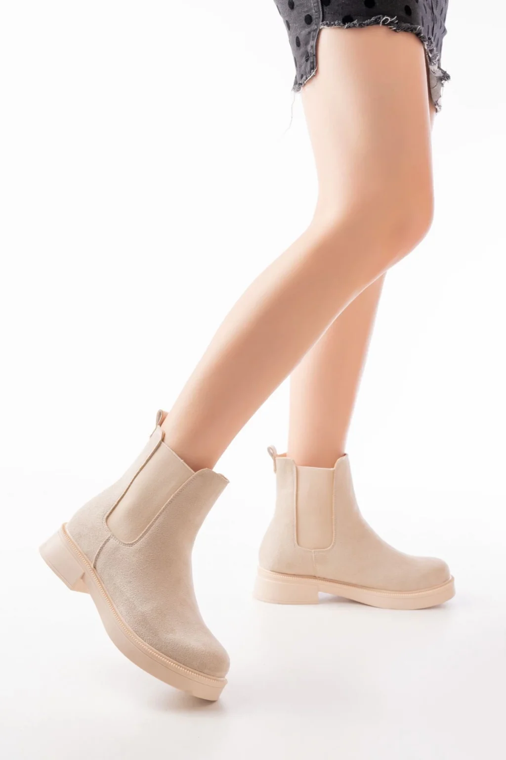 02-02 Siyah Süet Taş Aksesuarlı Lastikli Günlük Kadın Bot