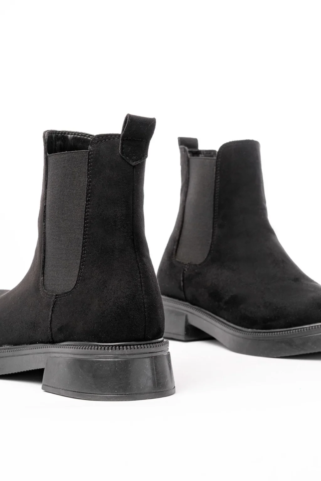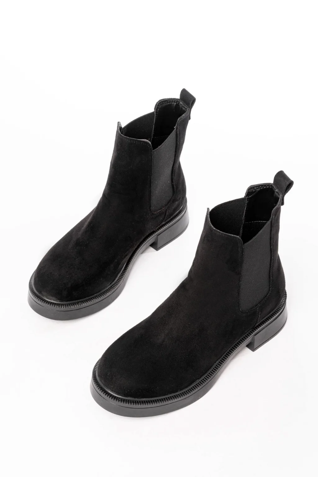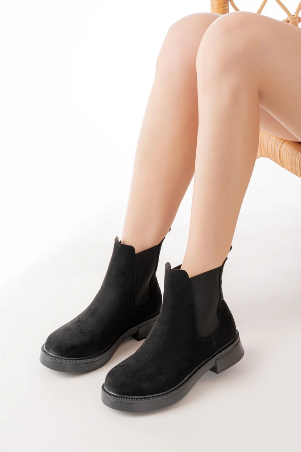 02-02 Siyah Süet Taş Aksesuarlı Lastikli Günlük Kadın Bot