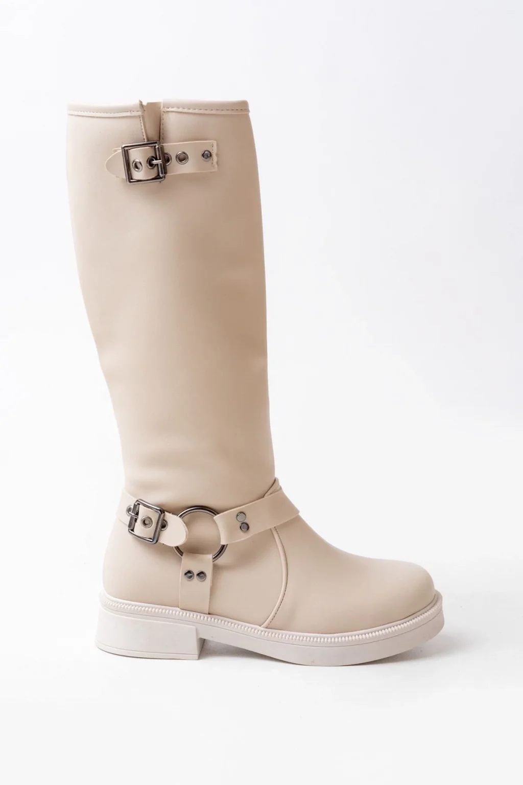 SR-2001 Bej Körüklü İnce Topuklu Günlük Bayan Çizme