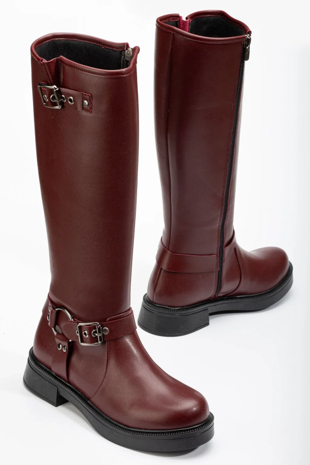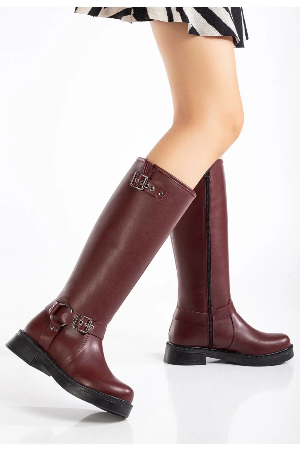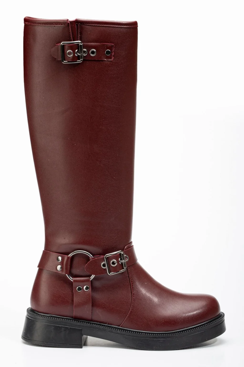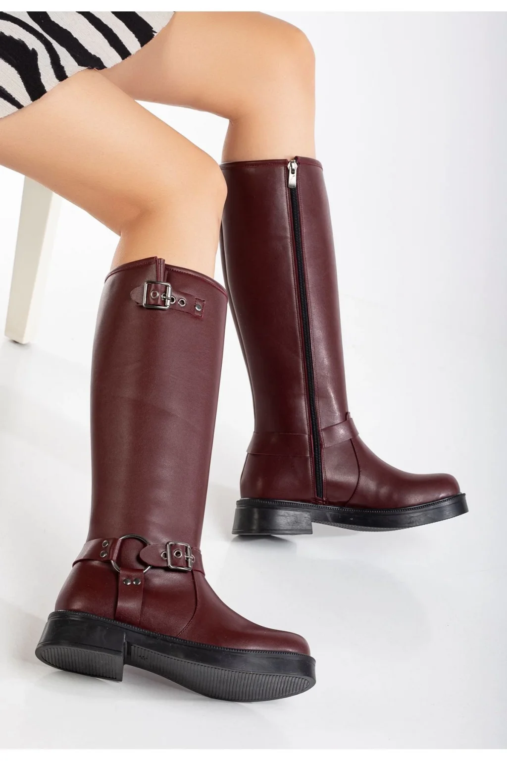 02-312 Kahverengi Toka Aksesuarlı Fermuarlı Günlük Kadın Çizme