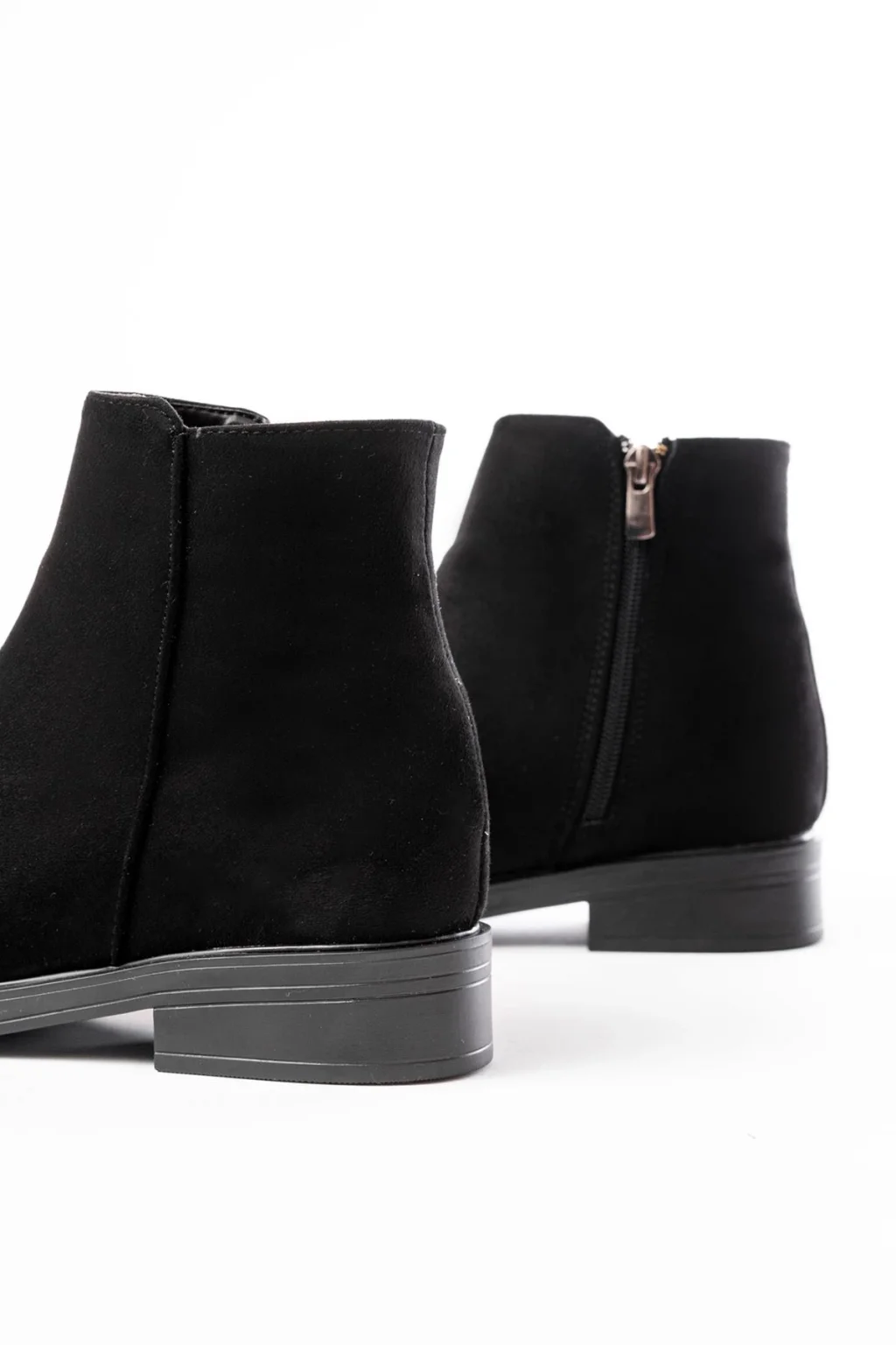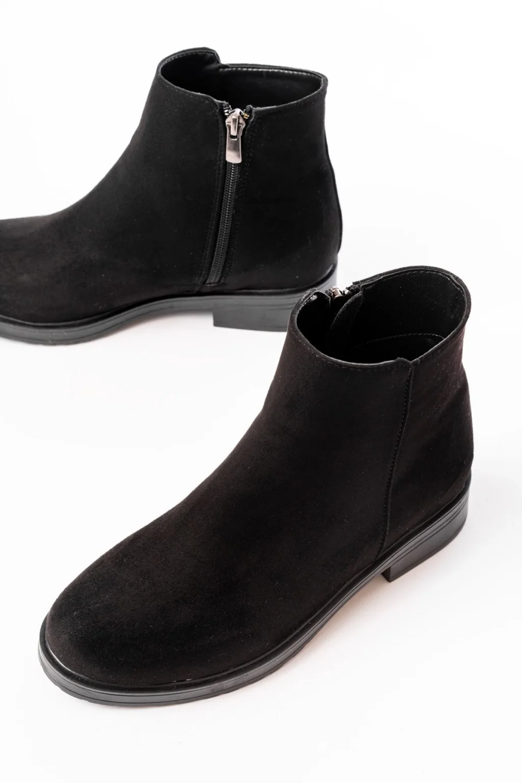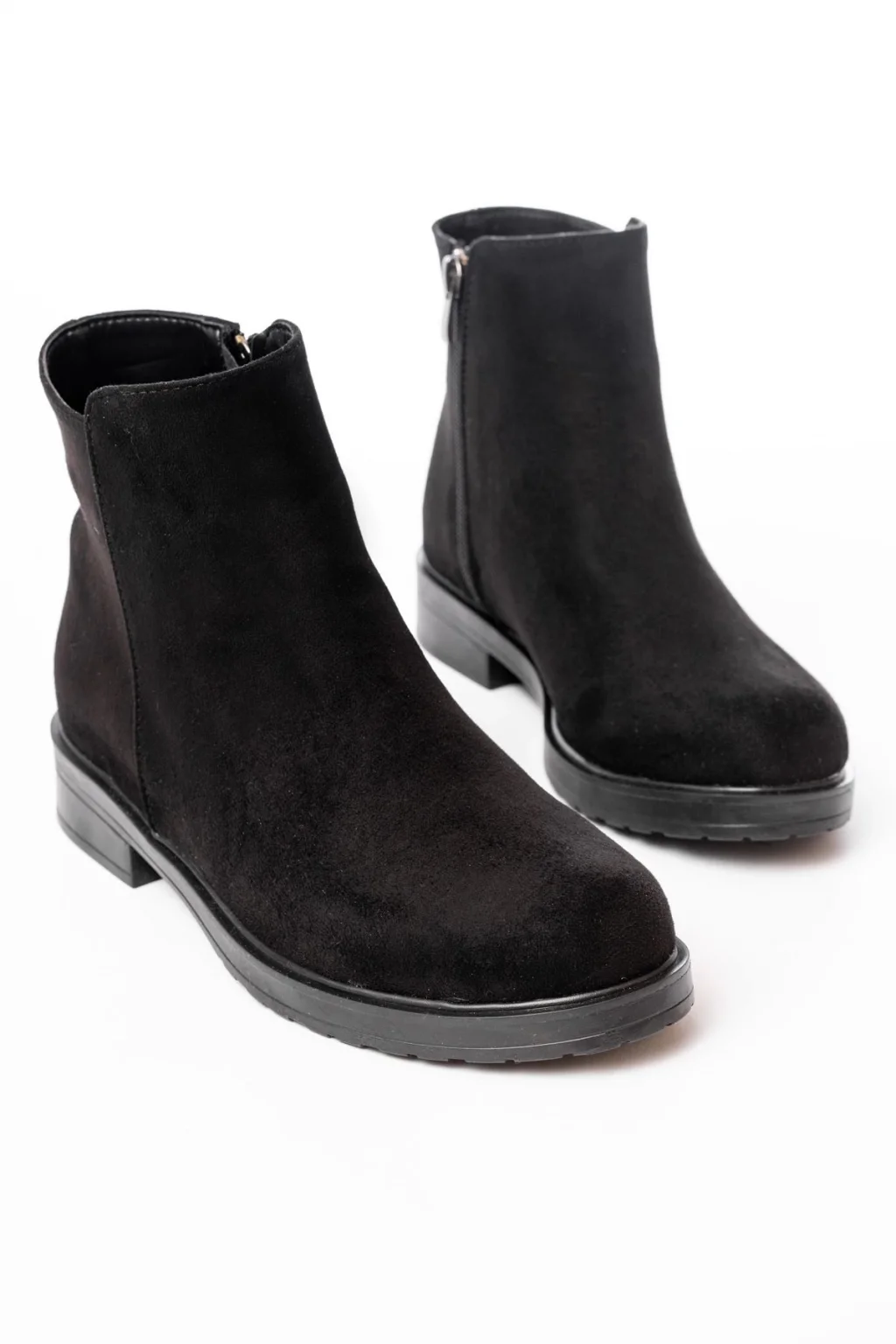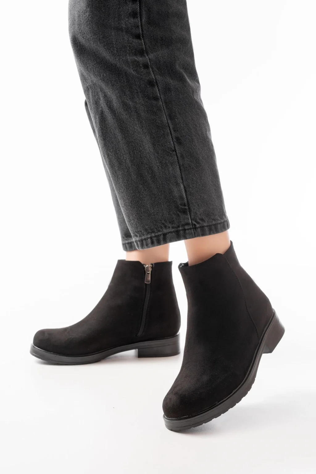 02-02 Siyah Süet Taş Aksesuarlı Lastikli Günlük Kadın Bot
