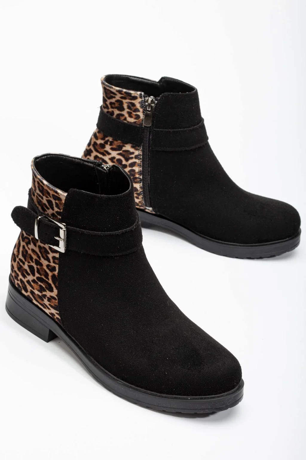 02-02 Siyah Süet Taş Aksesuarlı Lastikli Günlük Kadın Bot
