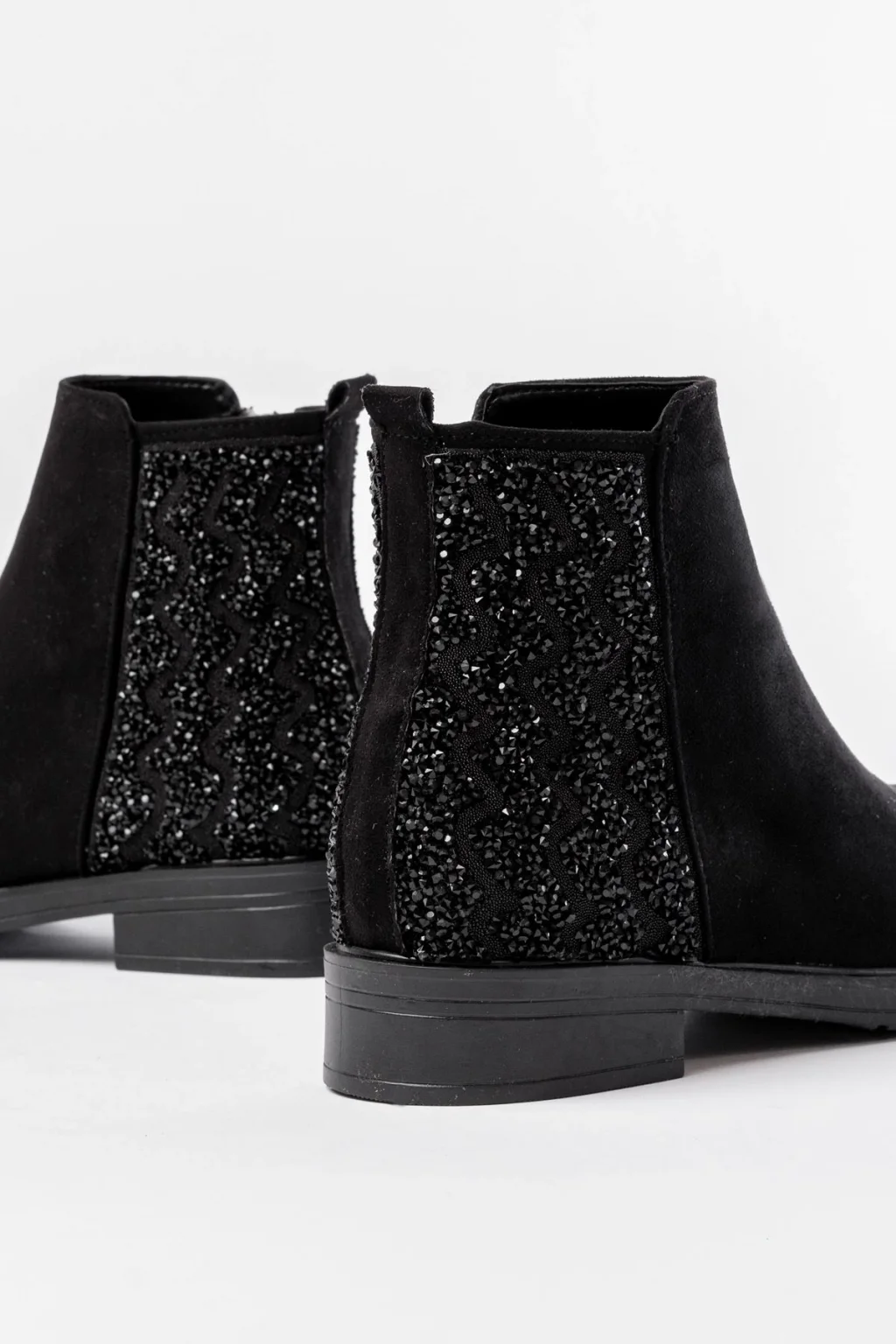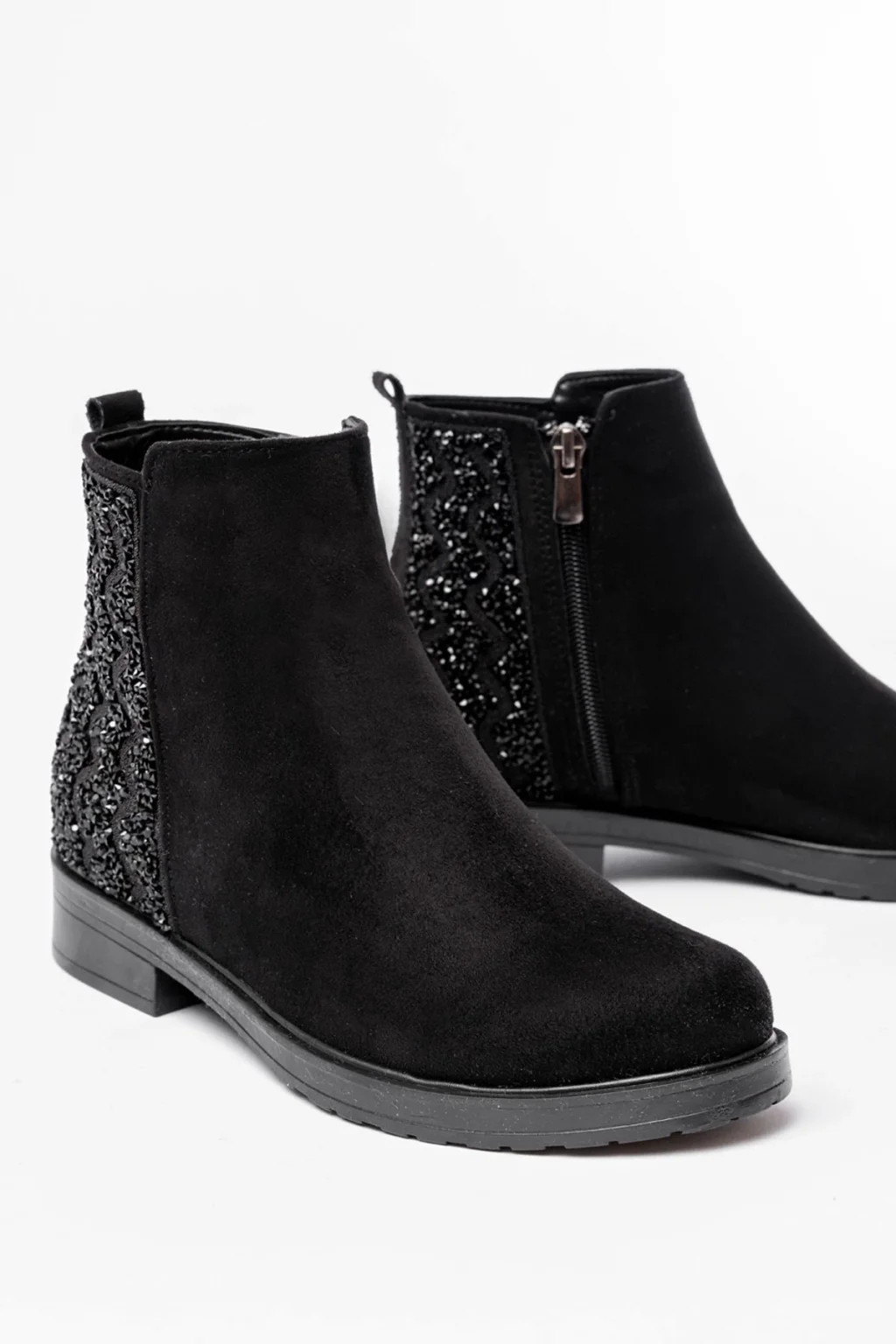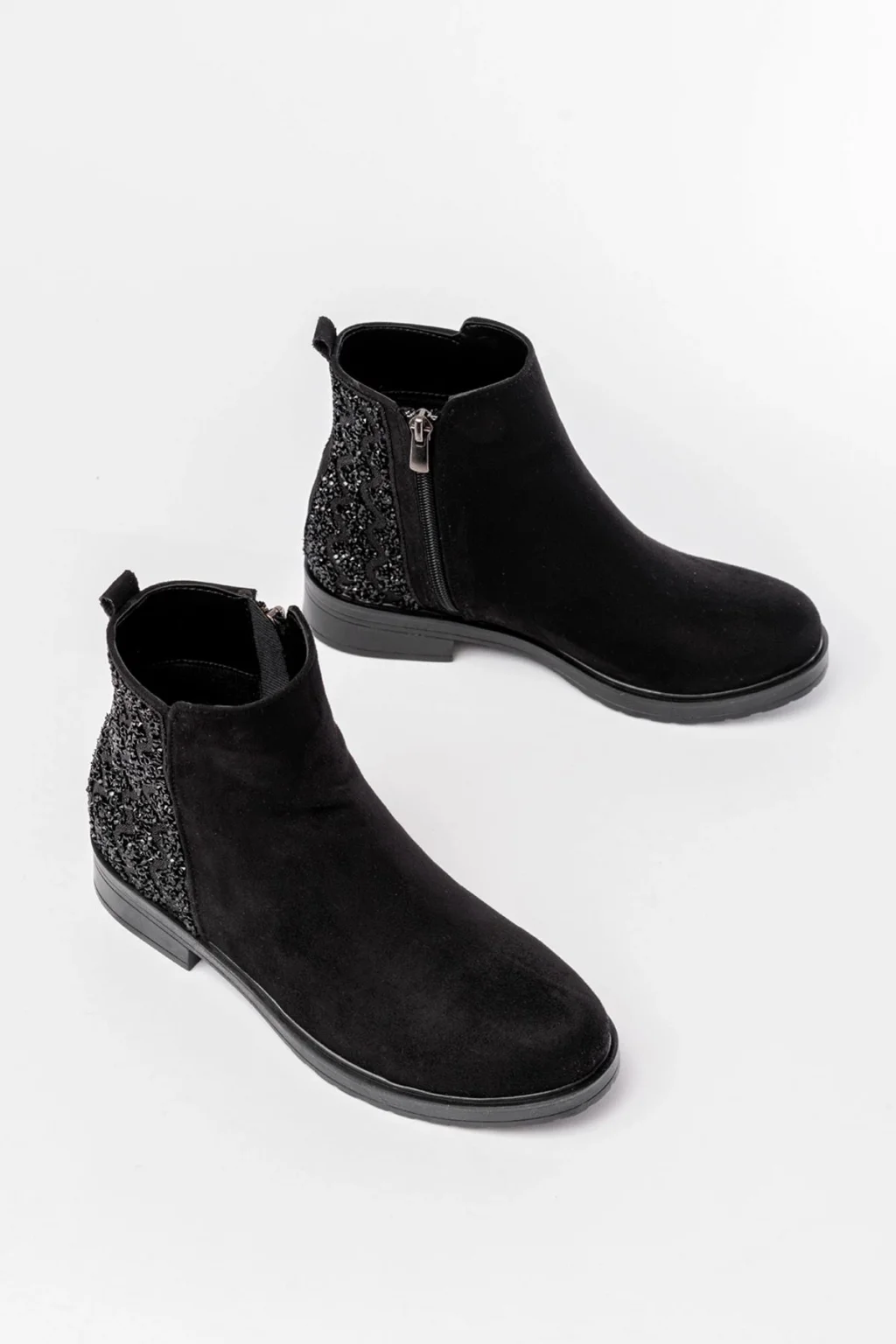 02-02 Siyah Süet Taş Aksesuarlı Lastikli Günlük Kadın Bot