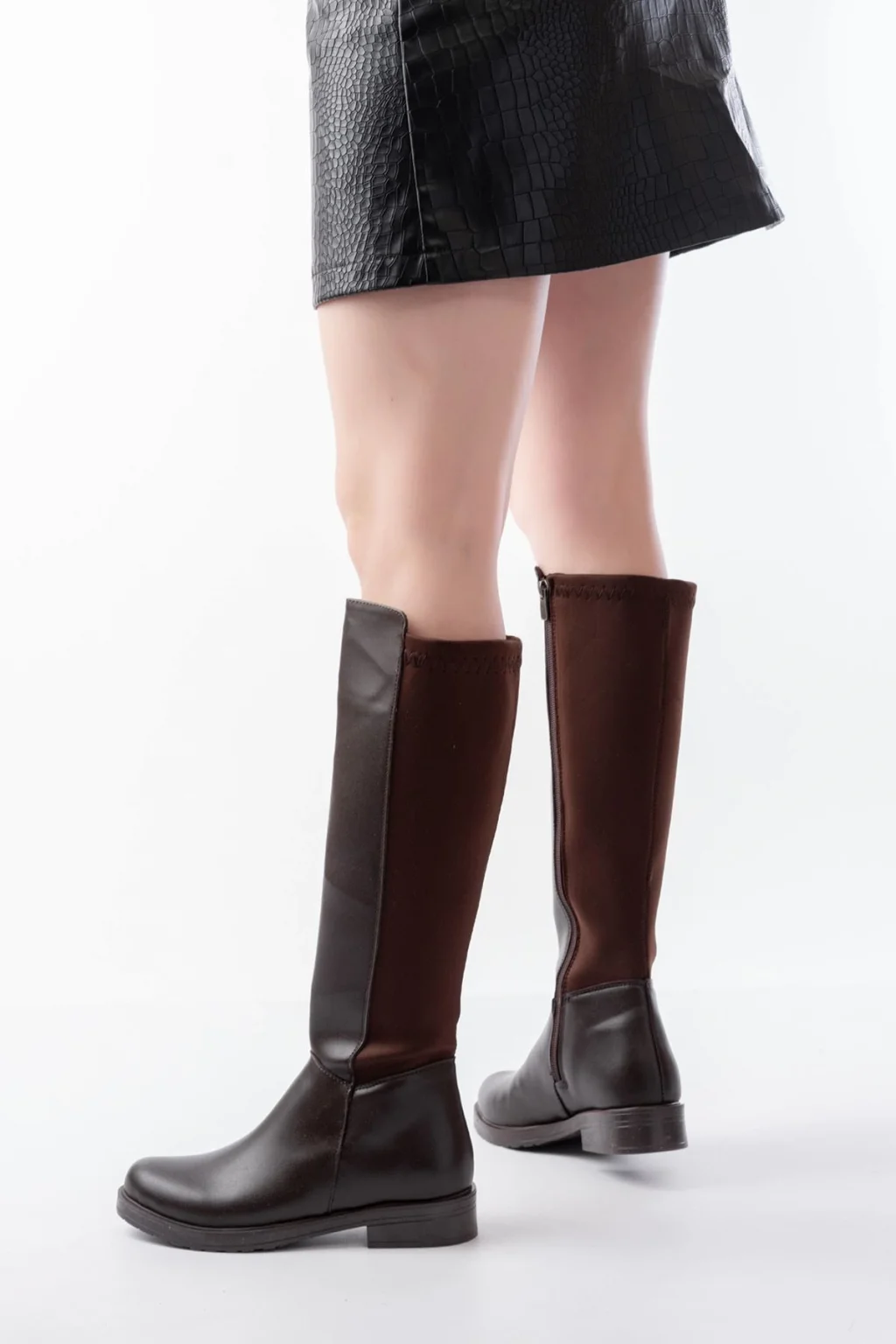 02-312 Kahverengi Toka Aksesuarlı Fermuarlı Günlük Kadın Çizme