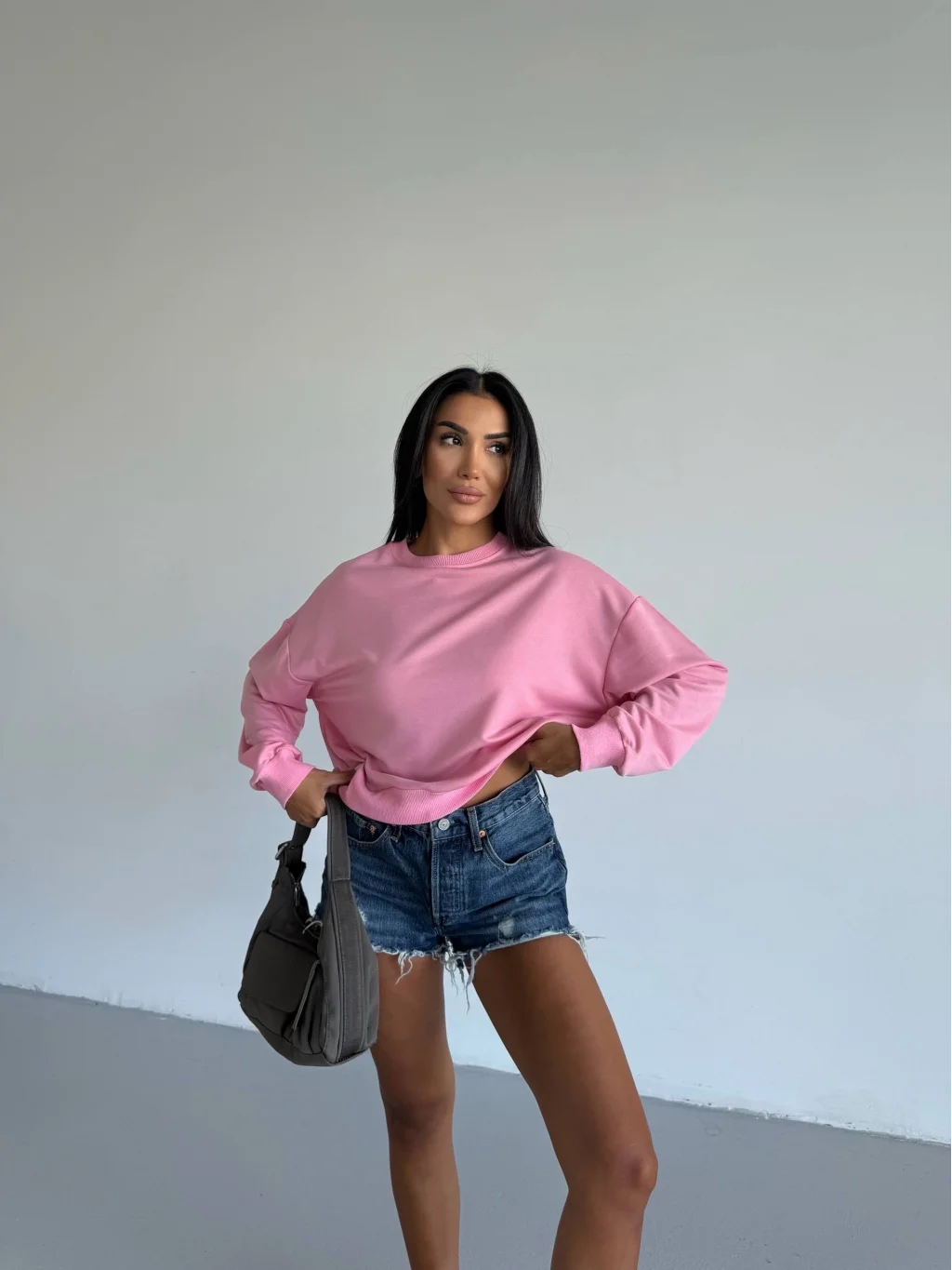 F2339 Bisiklet Yaka Sweat, şık tasarımı ile gardırobunuzun vazgeçilmezi olmaya aday!