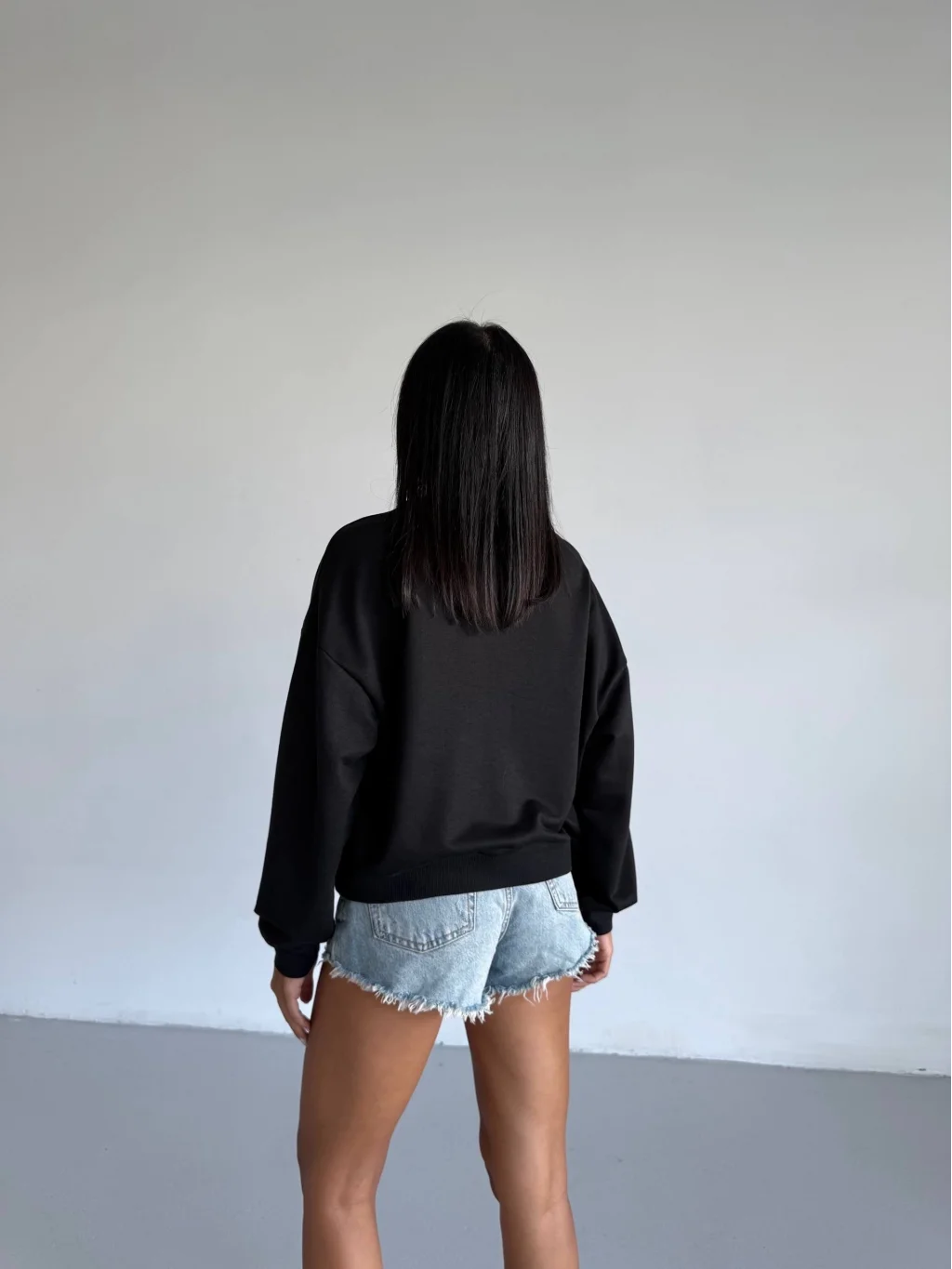3 iplik şardonlu oversize true baskılı sweat siyah