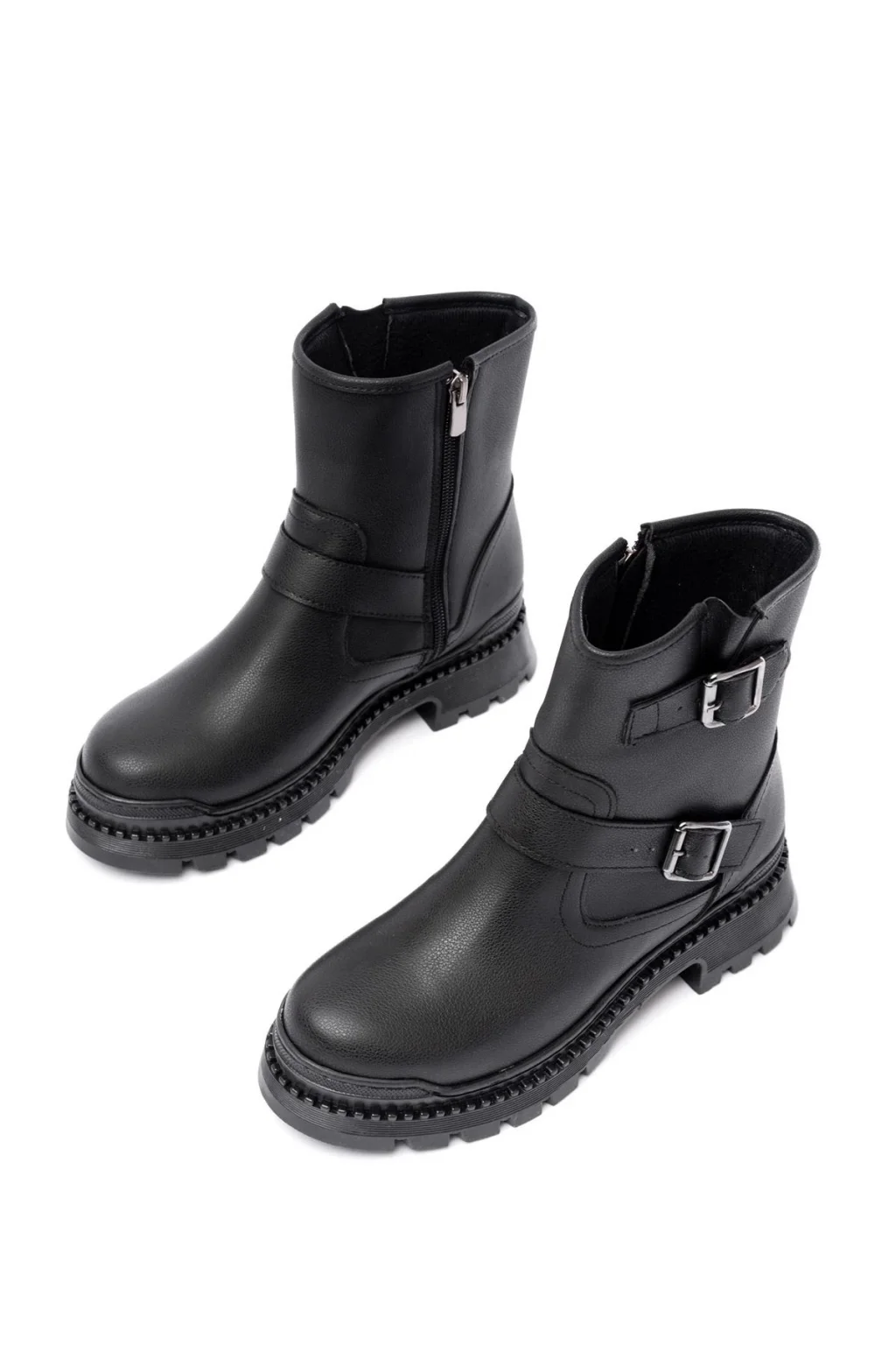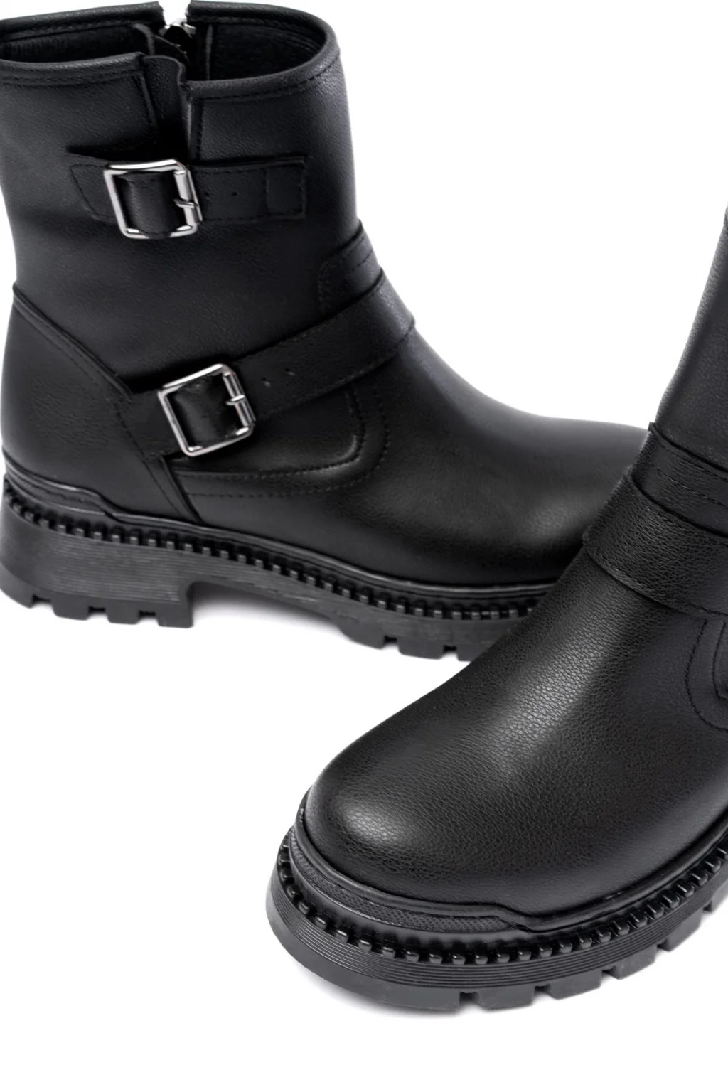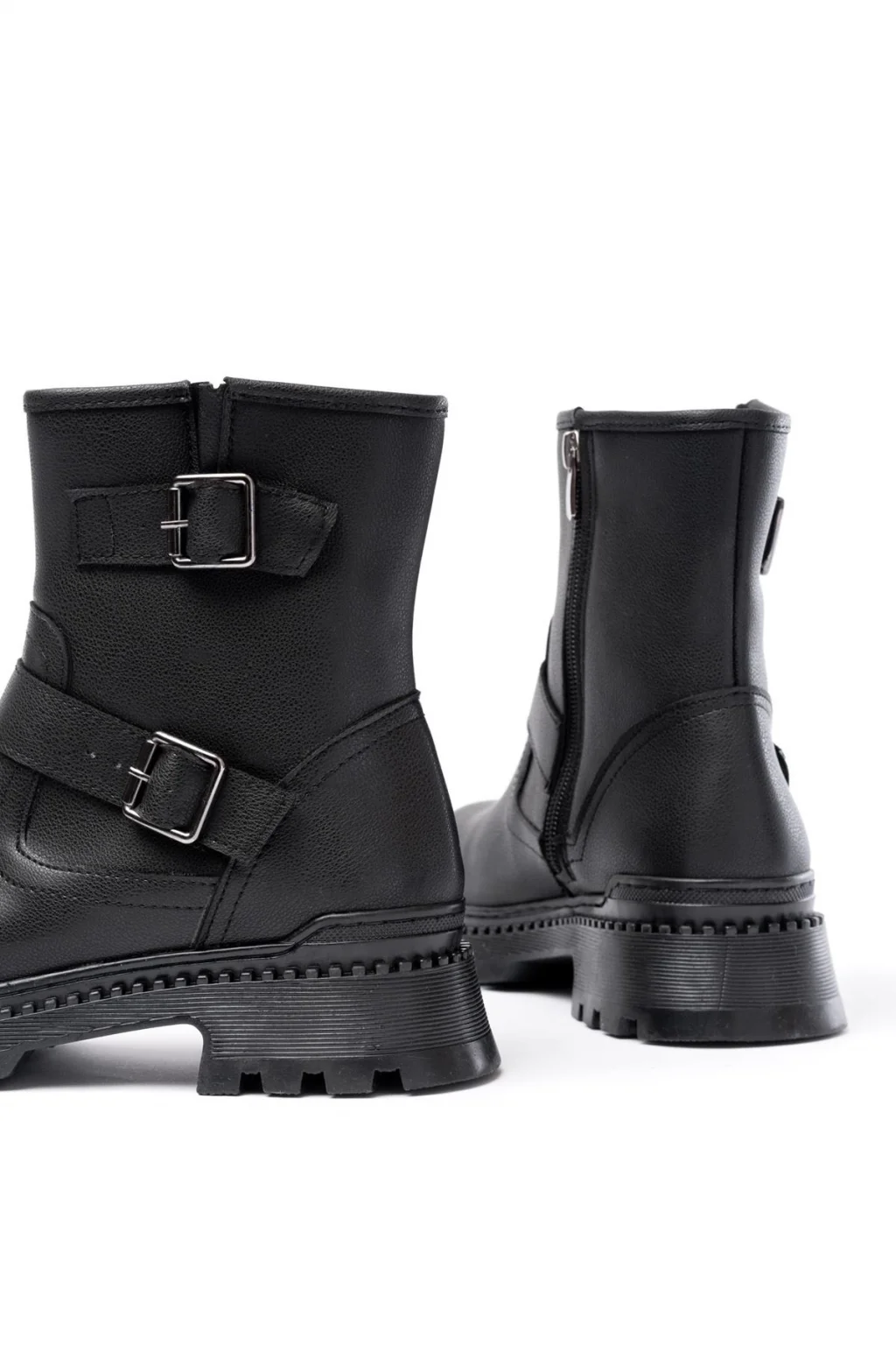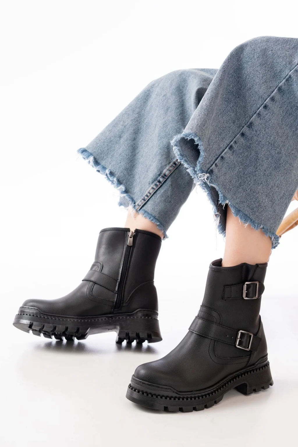 02-02 Siyah Taş Aksesuarlı Lastikli Günlük Kadın Bot