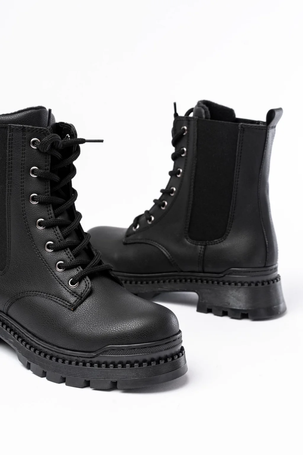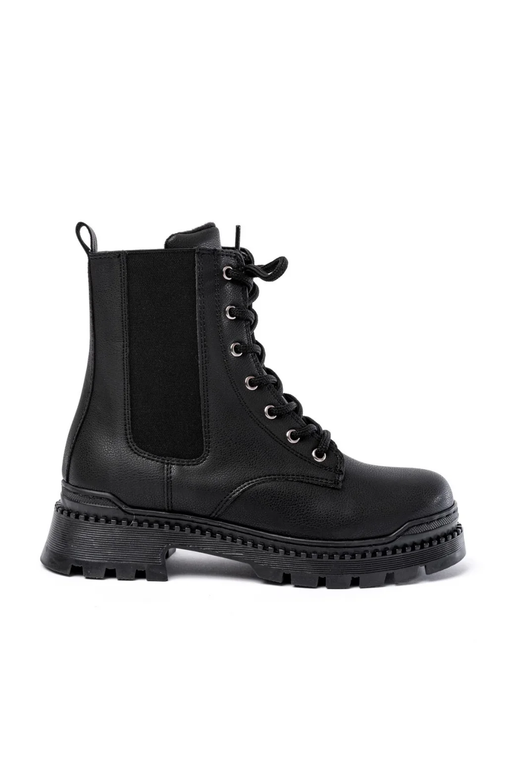 02-02 Siyah Taş Aksesuarlı Lastikli Günlük Kadın Bot