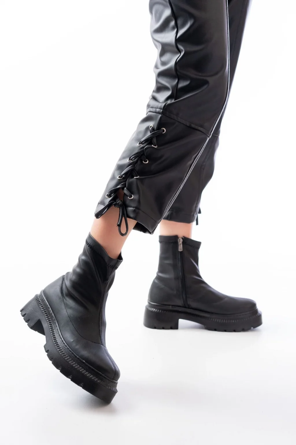02-02 Siyah Taş Aksesuarlı Lastikli Günlük Kadın Bot