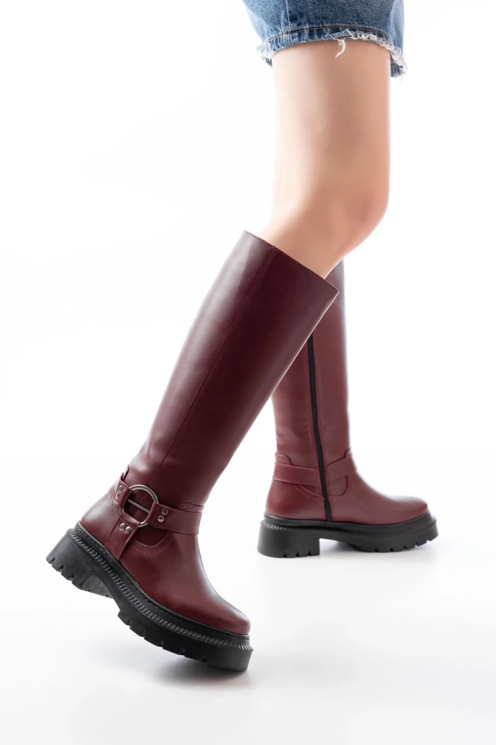 02-312 Siyah Toka Aksesuarlı Fermuarlı Günlük Kadın Çizme