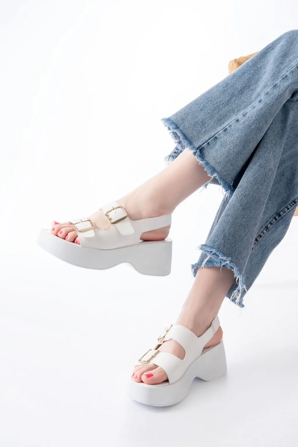 Enjali Beyaz Cilt Sandalet