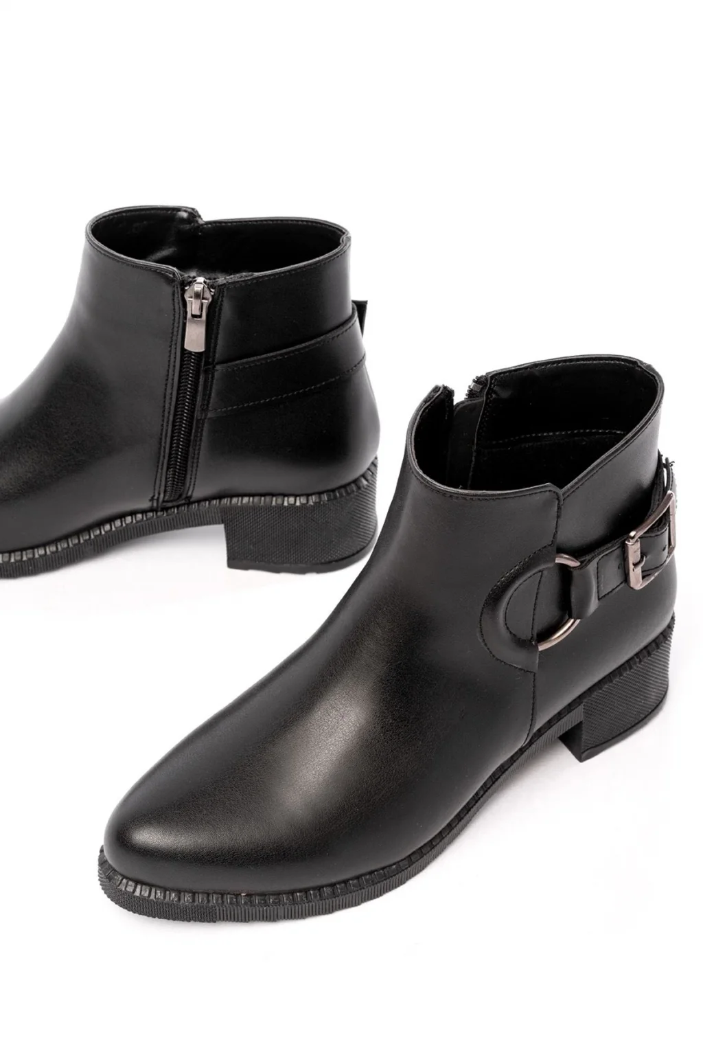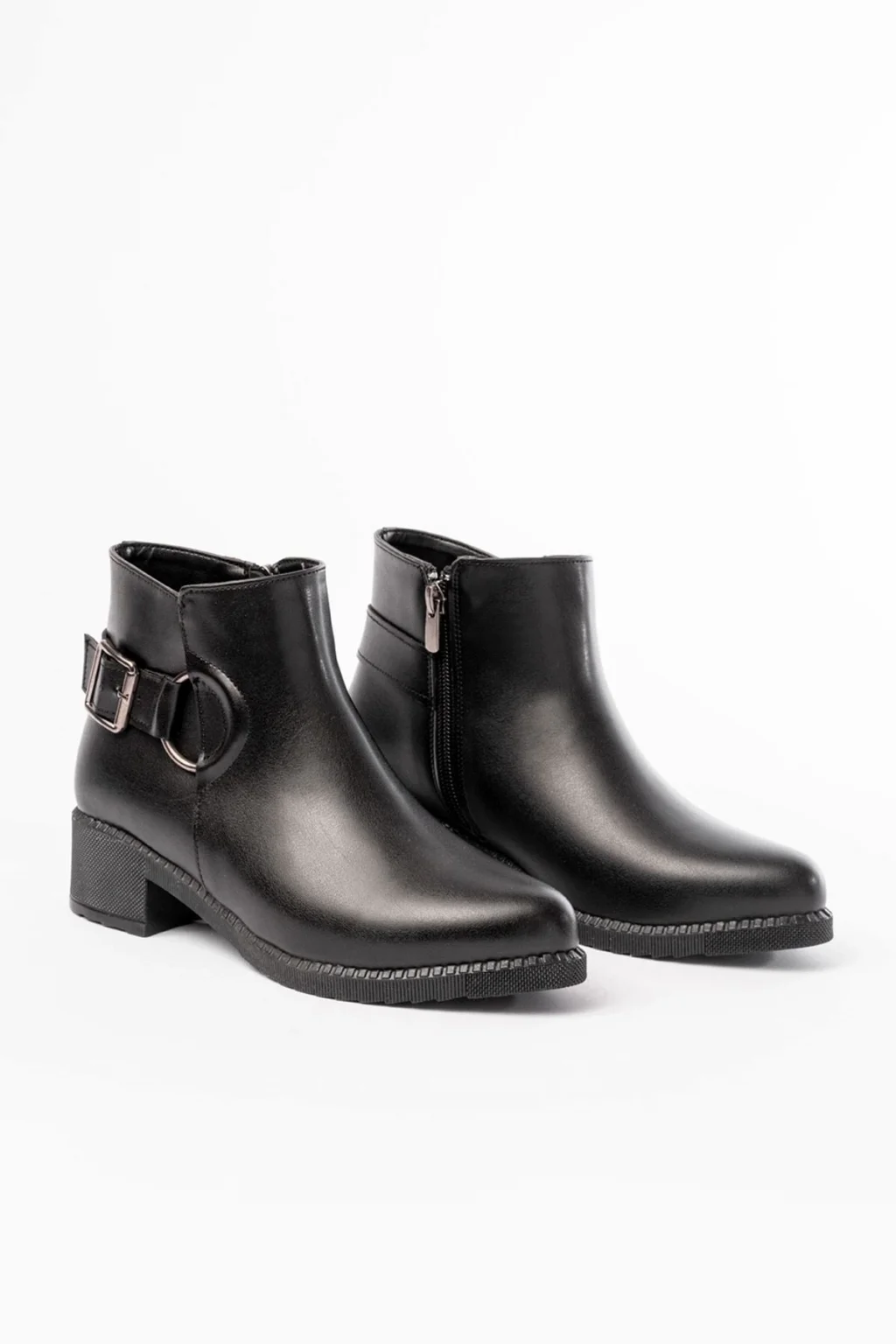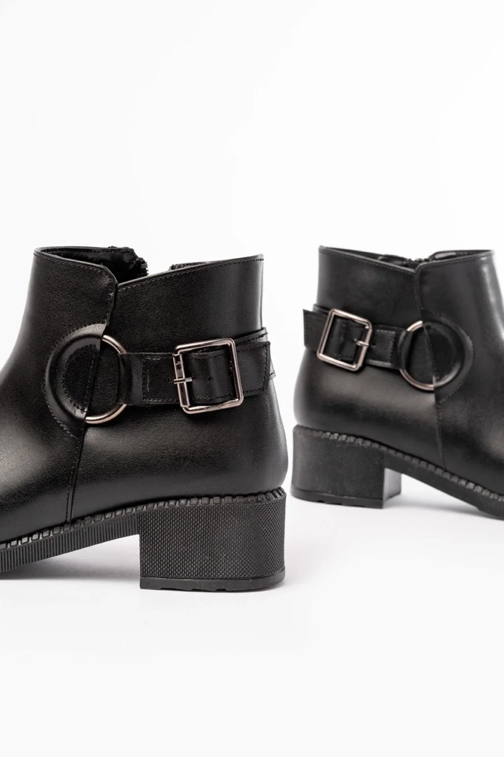 02-02 Siyah Taş Aksesuarlı Lastikli Günlük Kadın Bot