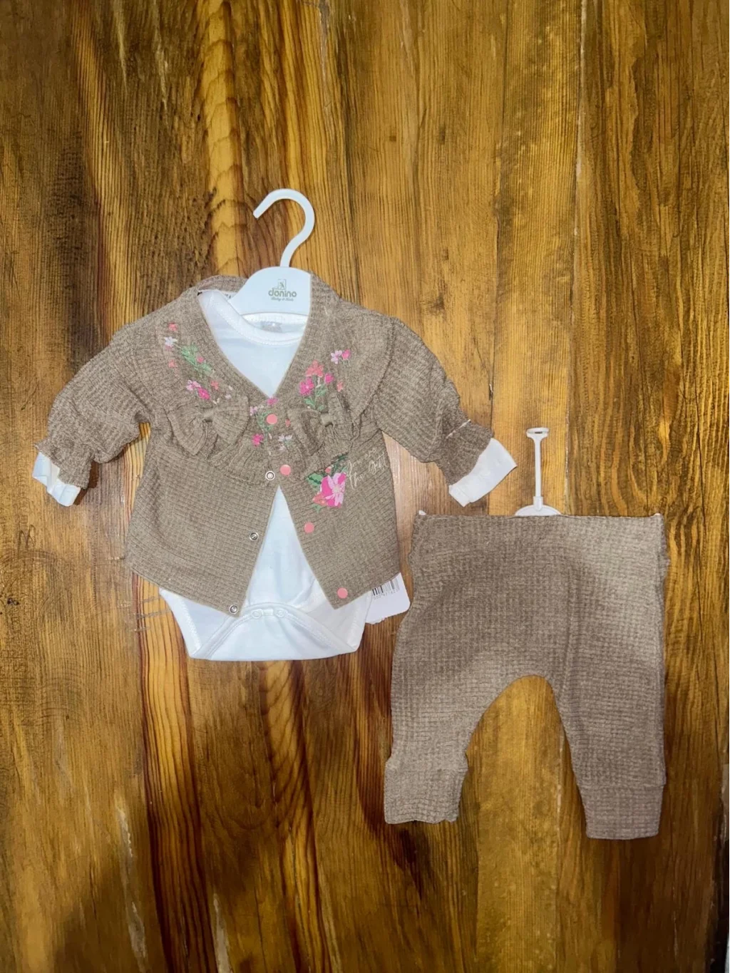 - Bebeğinizin konforu ve şıklığı için tasarlanmış üçlü takım seti.