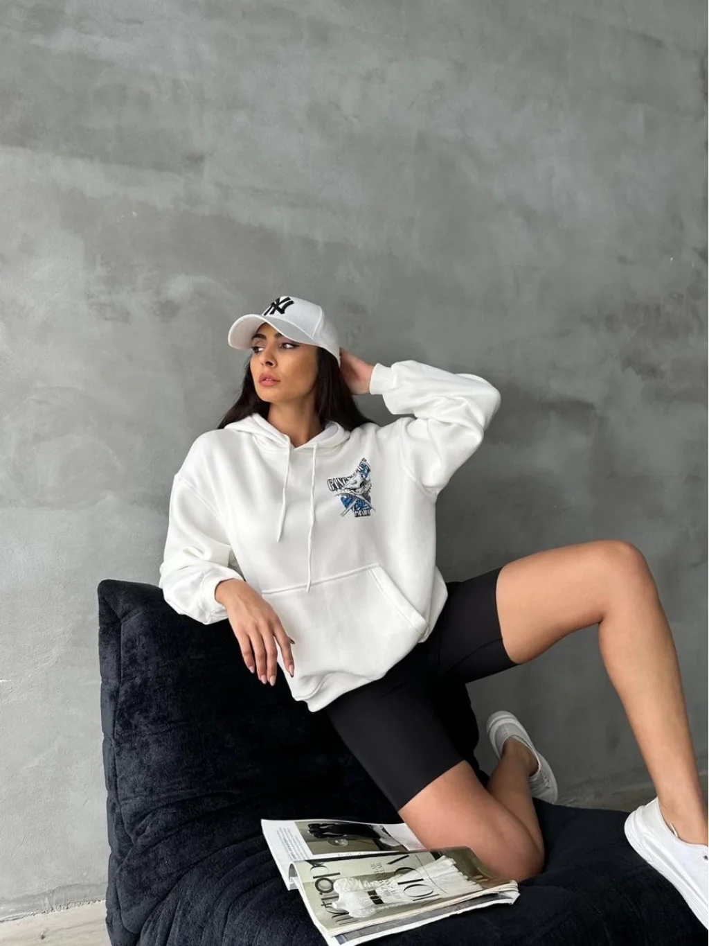 Bu şıklık ve rahatlığı bir arada sunan 3 iplik şardonlu oversize compact kafa baskılı sweat beyaz, gardırobunuzun vazgeçilmezi olmaya aday! İşte bu harika sweatshirt'ün özellikleri: