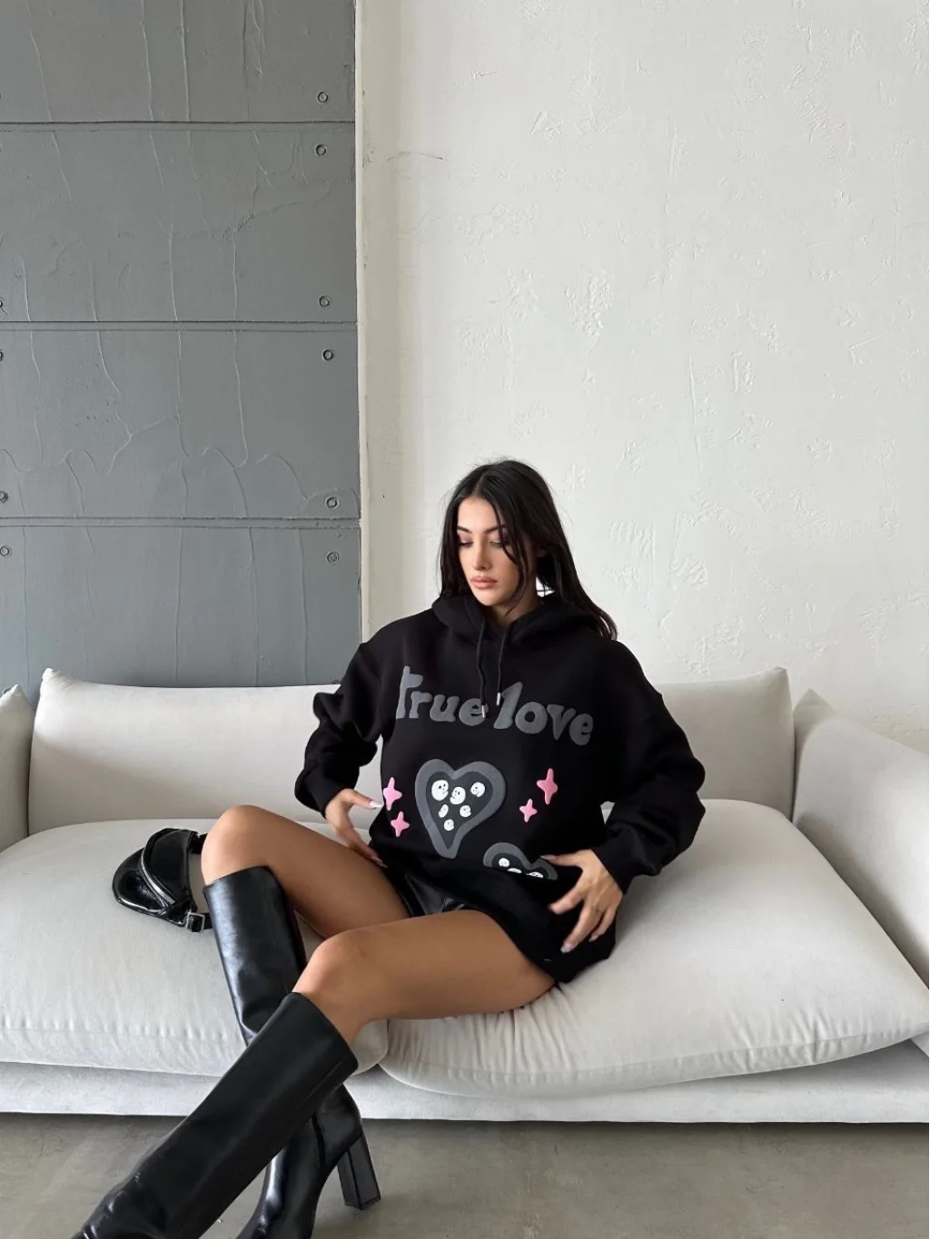3 iplik şardonlu oversize compact out of baskılı sweat siyah, şıklığı ve rahatlığı bir arada sunuyor. Detaylı dikişleri ve özel tasarımı ile dikkat çeken bu sweatshirt, kadın giyim kategorisinde öne çıkıyor.