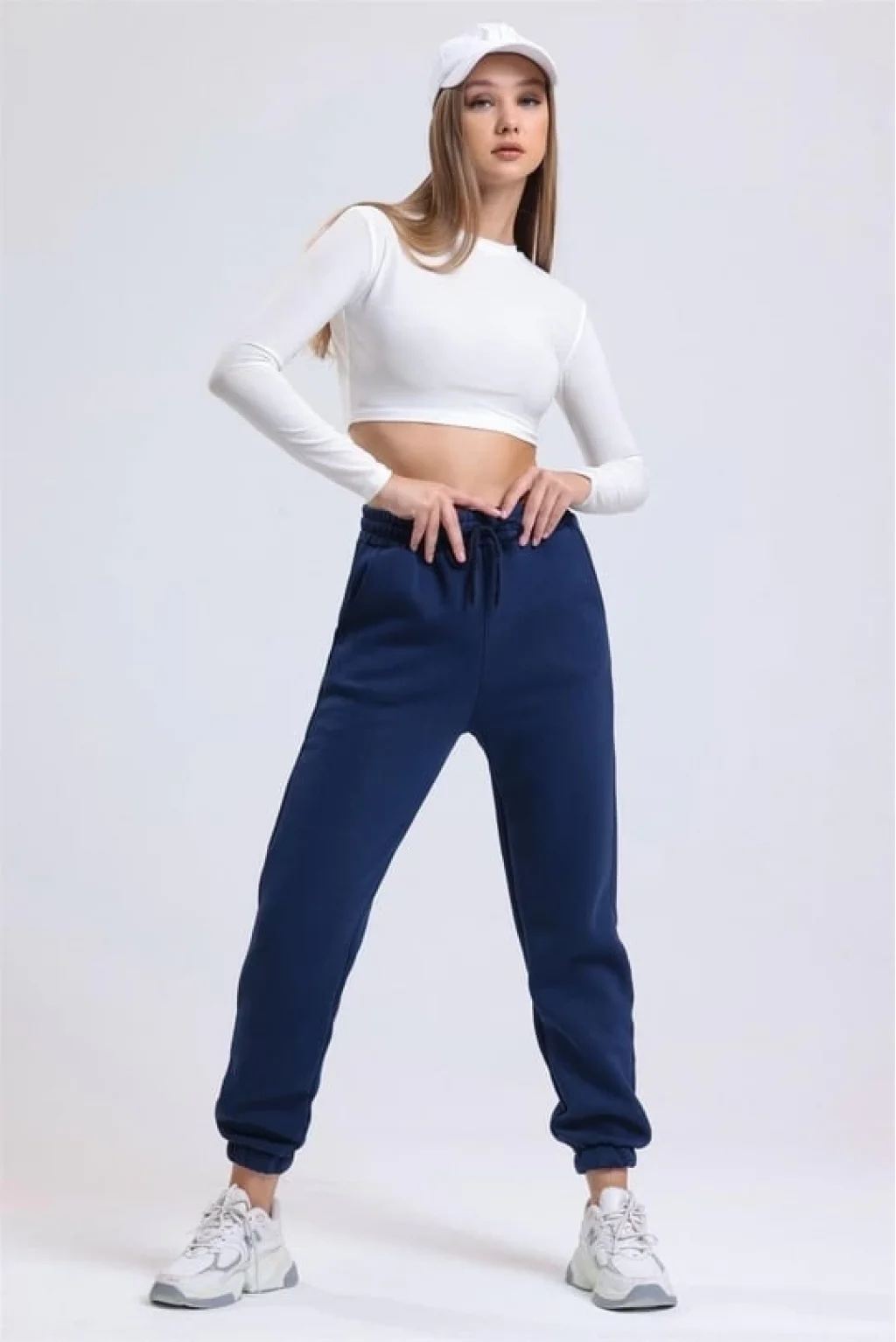 İşte spor yaparken ve günlük hayatta rahatlıkla tercih edebileceğiniz Lacivert 3 İplik Şardonlu Paça Lastikli Eşofman!