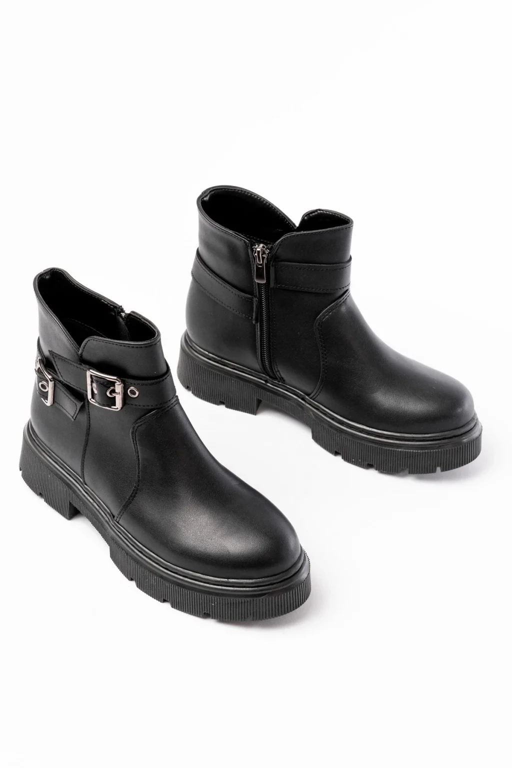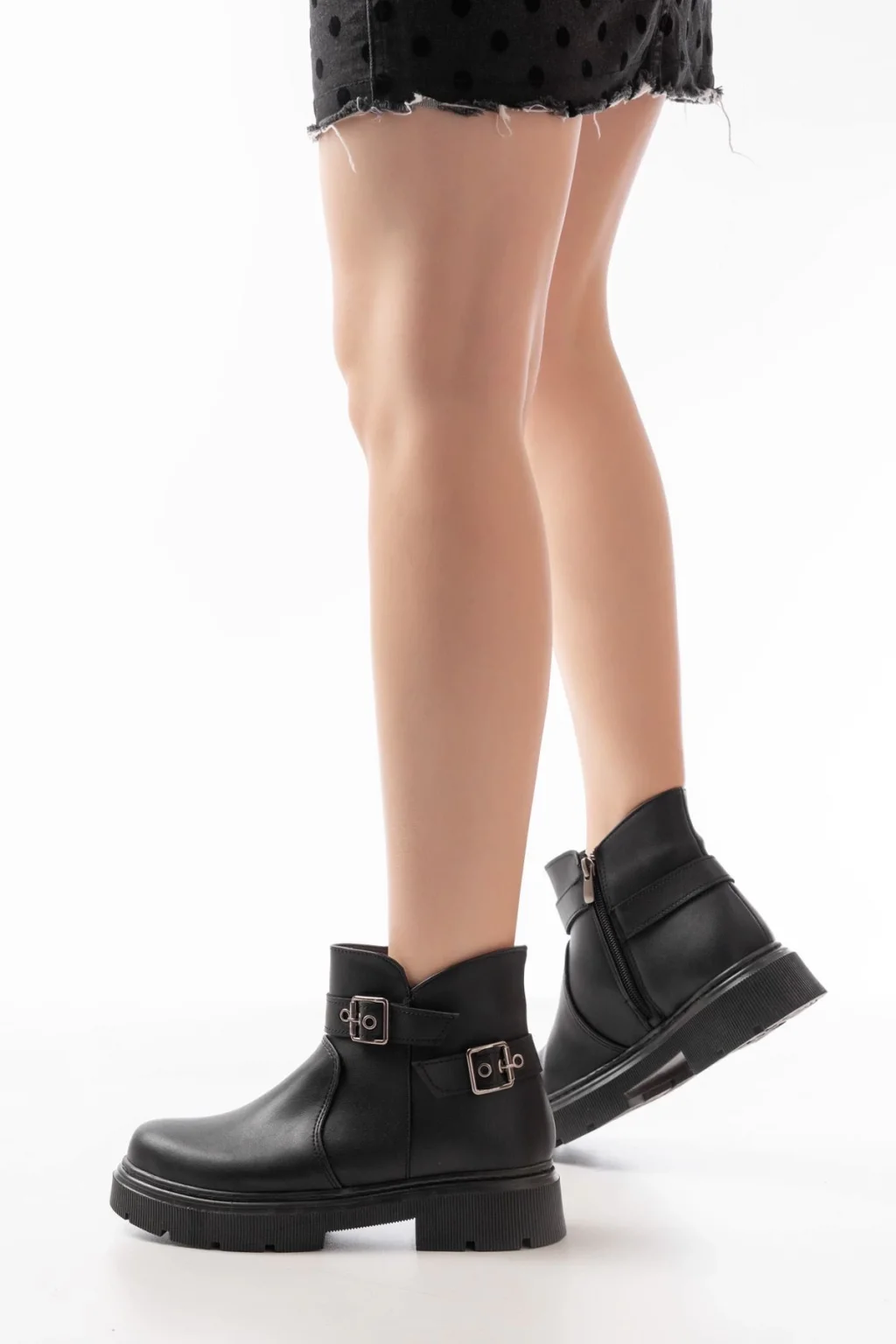 02-02 Siyah Taş Aksesuarlı Lastikli Günlük Kadın Bot