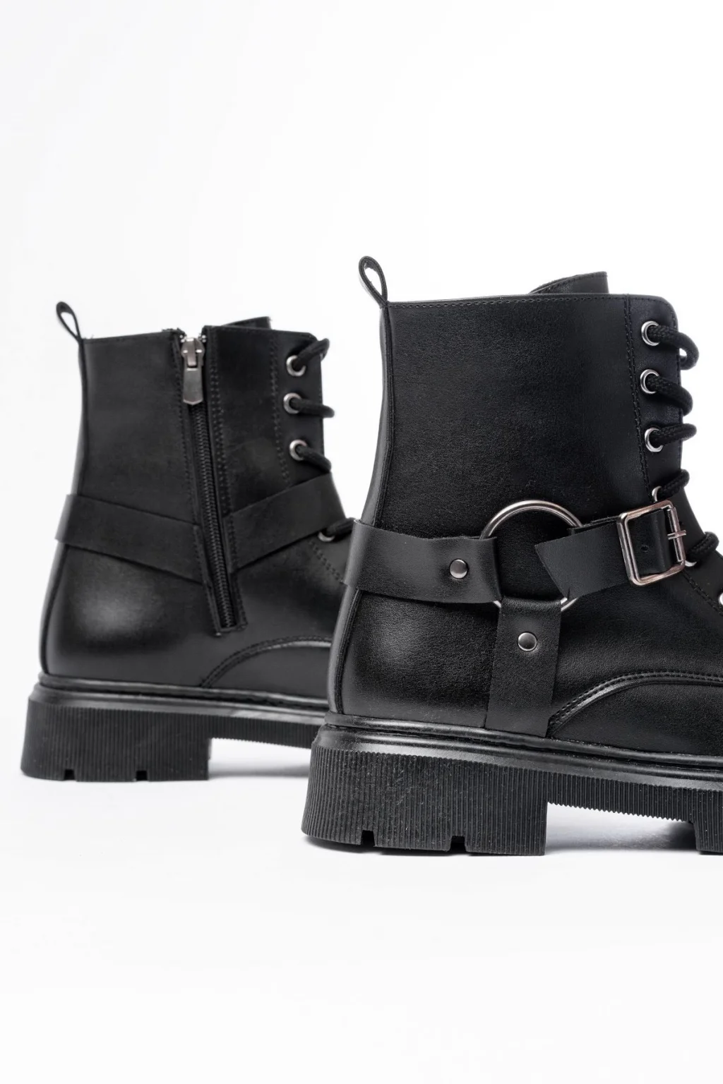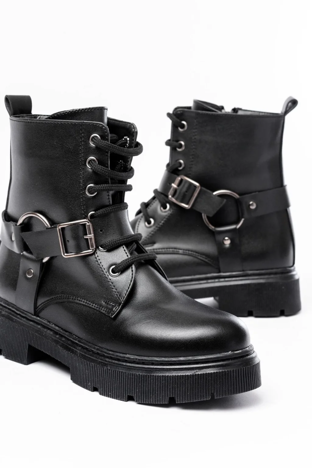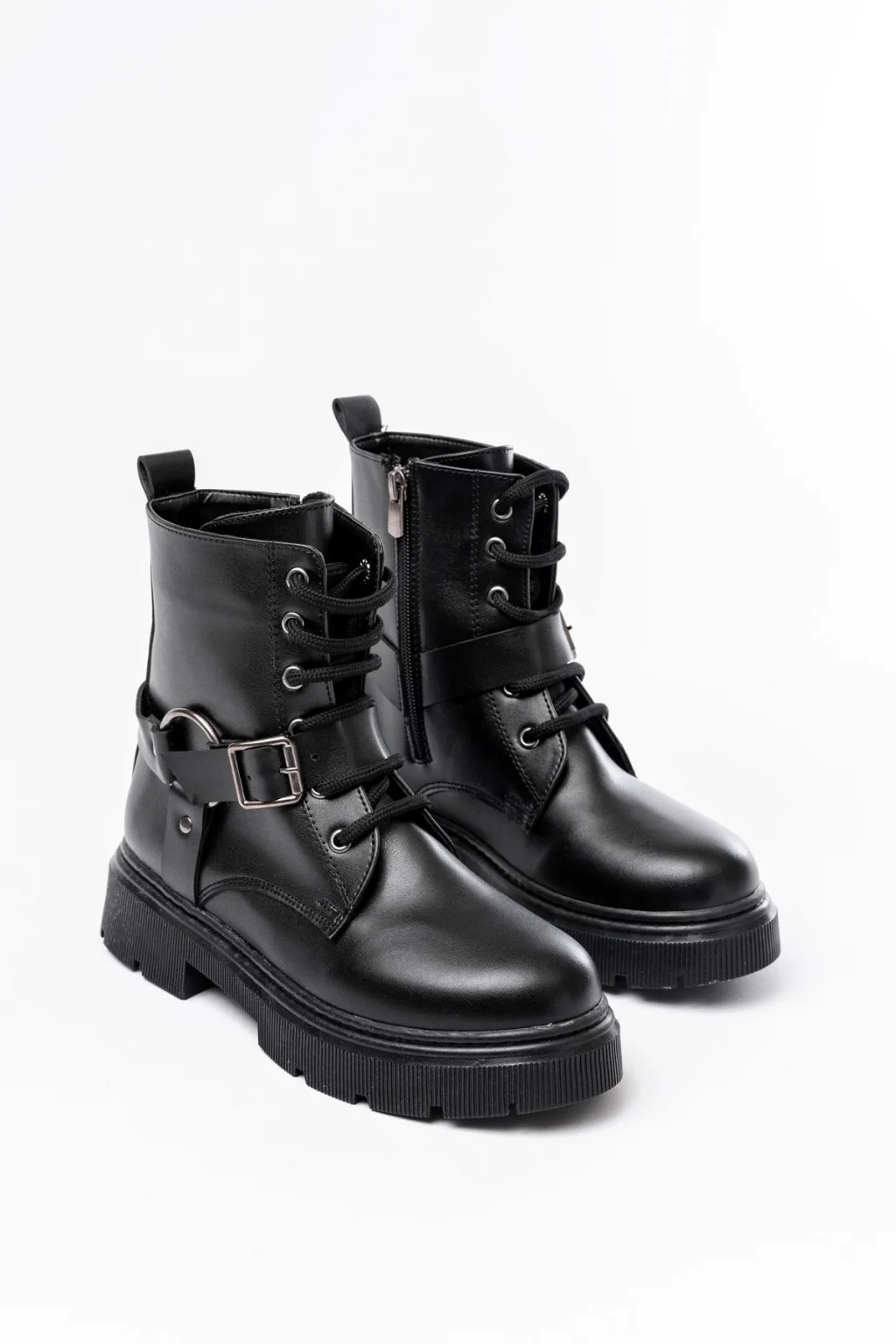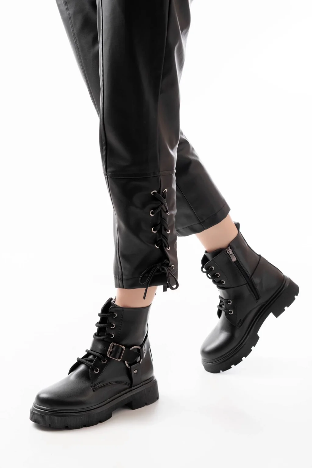 02-02 Siyah Taş Aksesuarlı Lastikli Günlük Kadın Bot