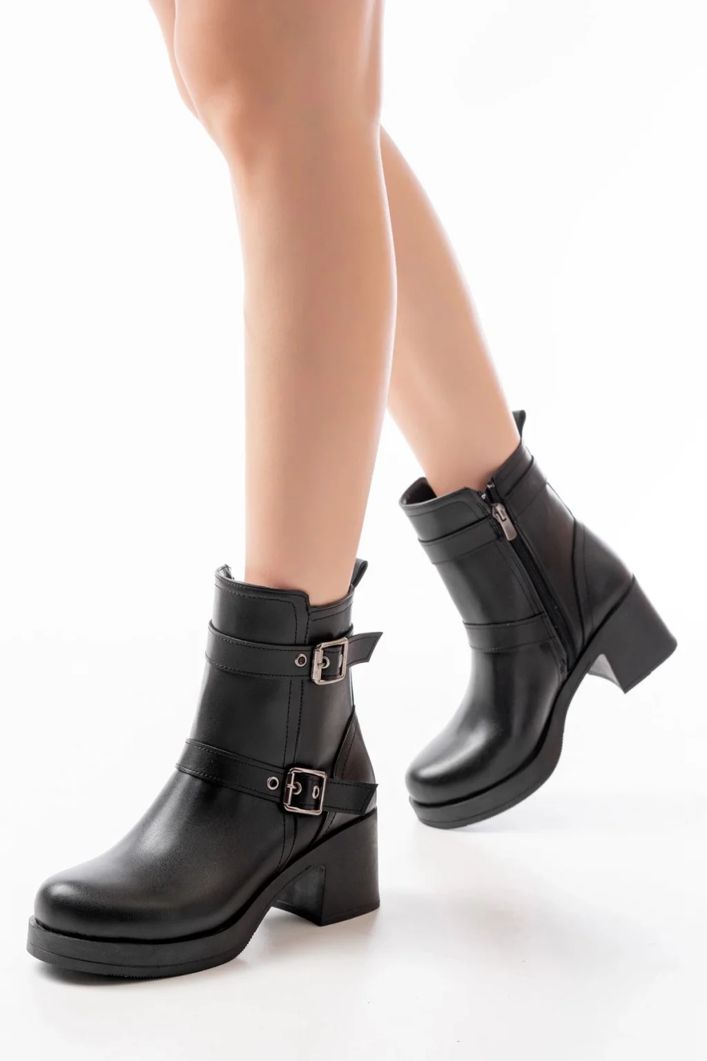 Mişha Siyah Cilt Topuklu Bot