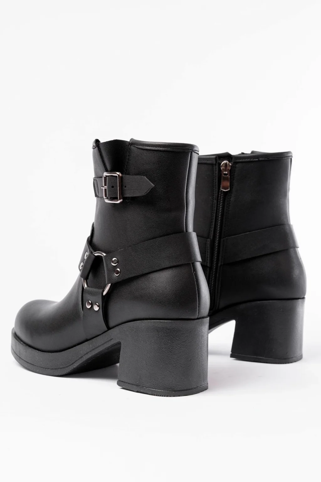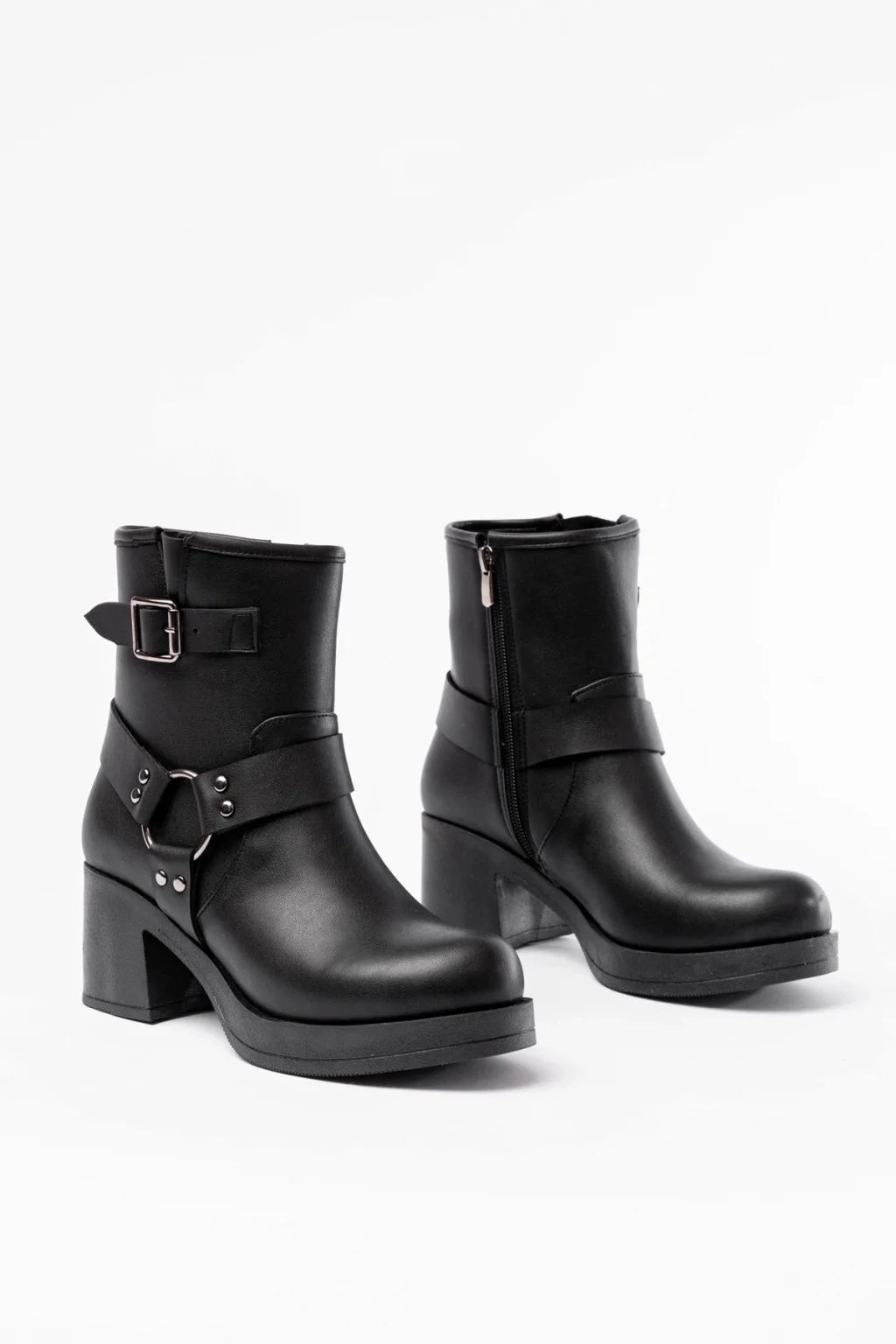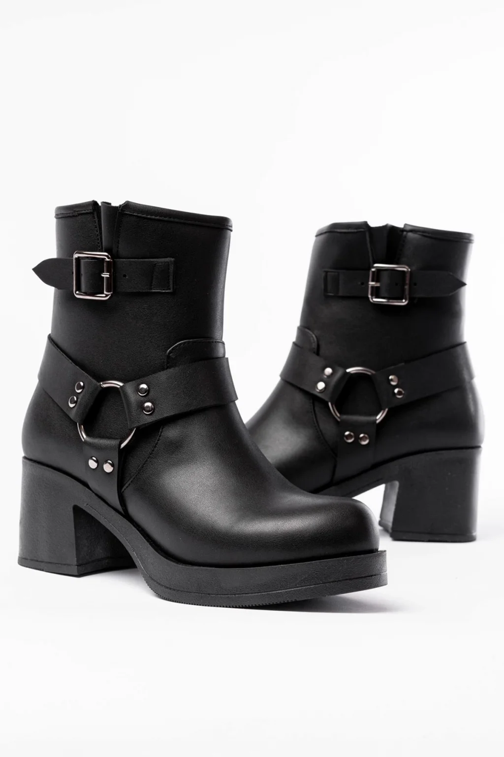 02-02 Siyah Taş Aksesuarlı Lastikli Günlük Kadın Bot