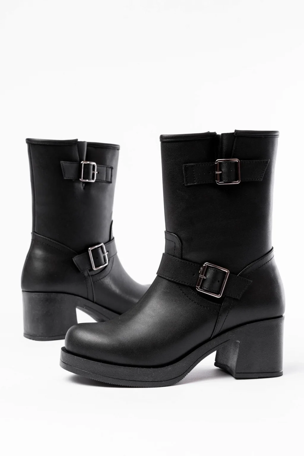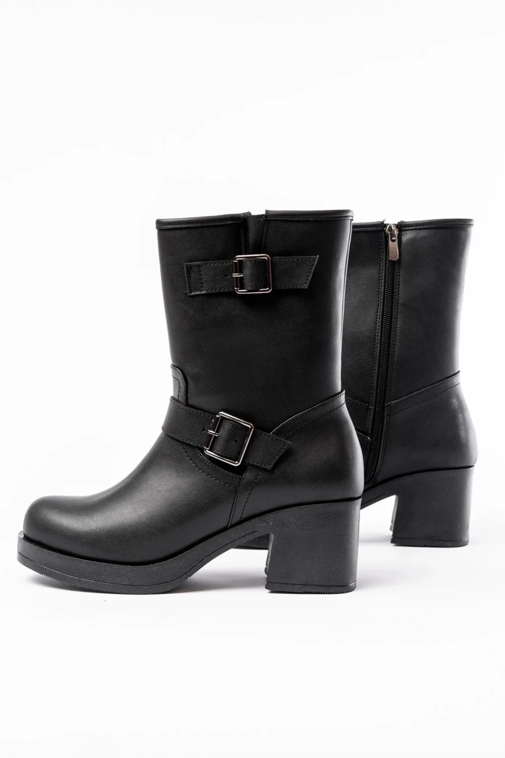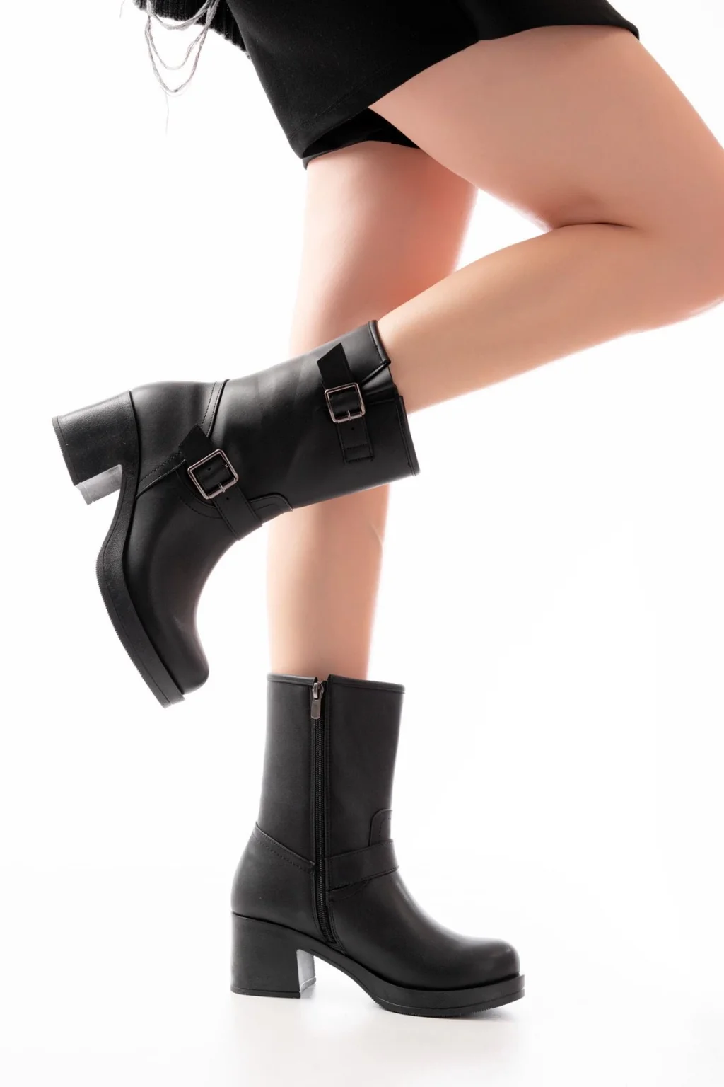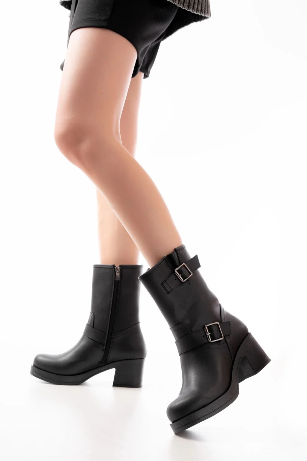 02-02 Siyah Taş Aksesuarlı Lastikli Günlük Kadın Bot