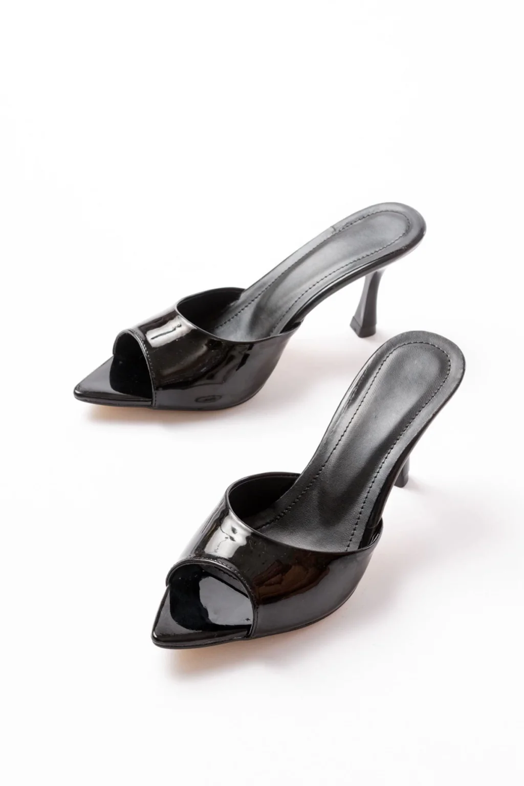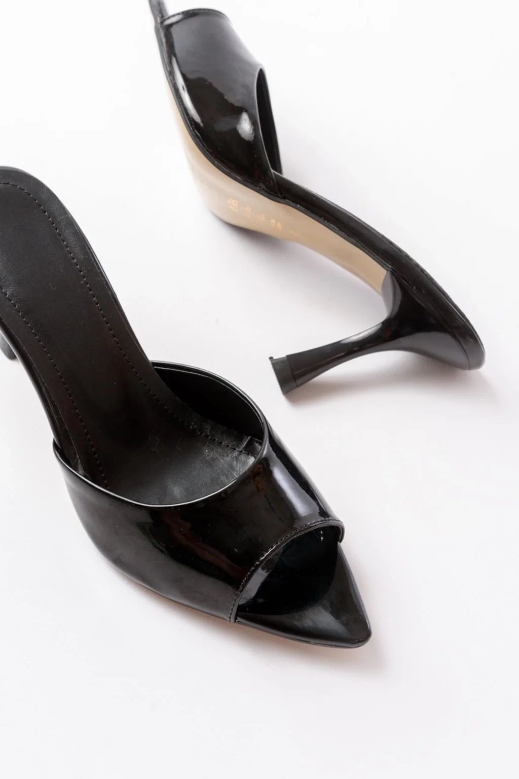 Lanina Siyah Cilt Topuklu Ayakkabı