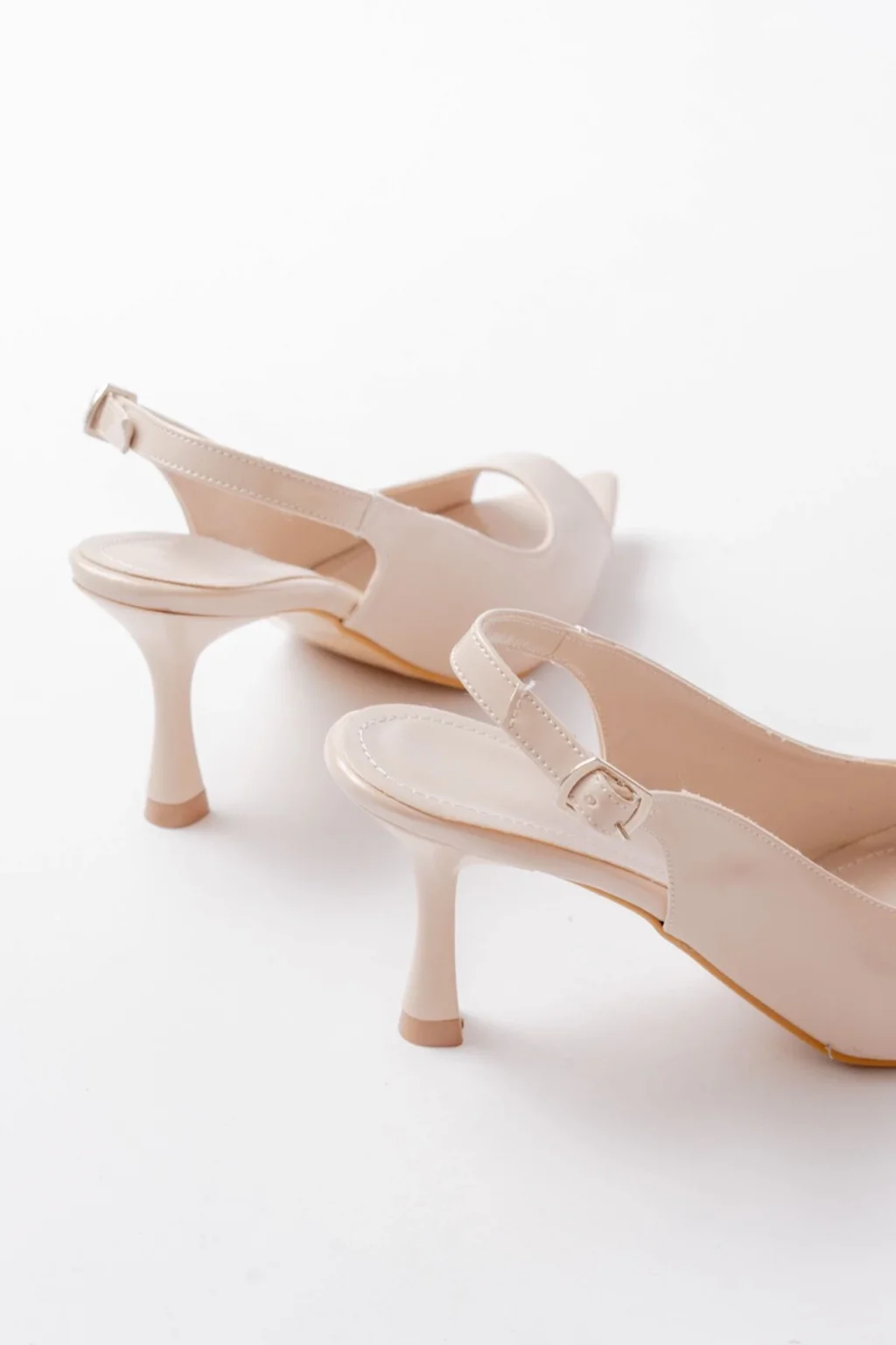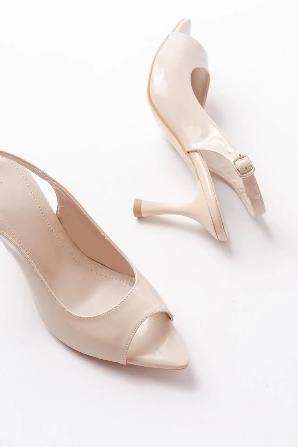 Toran Beyaz Rugan Siyah Süet Detaylı Topuklu Ayakkabı