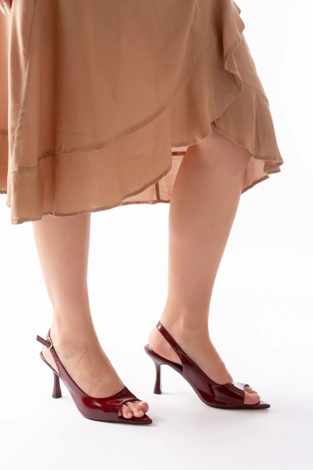 Winar Bordo Rugan Doldu Topuk Ayakkabı