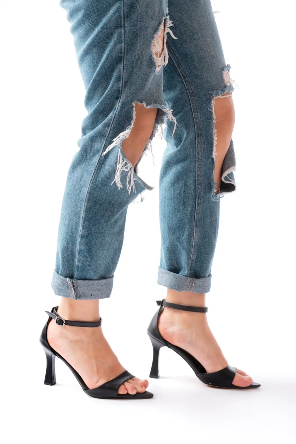 Lanina Siyah Cilt Topuklu Ayakkabı