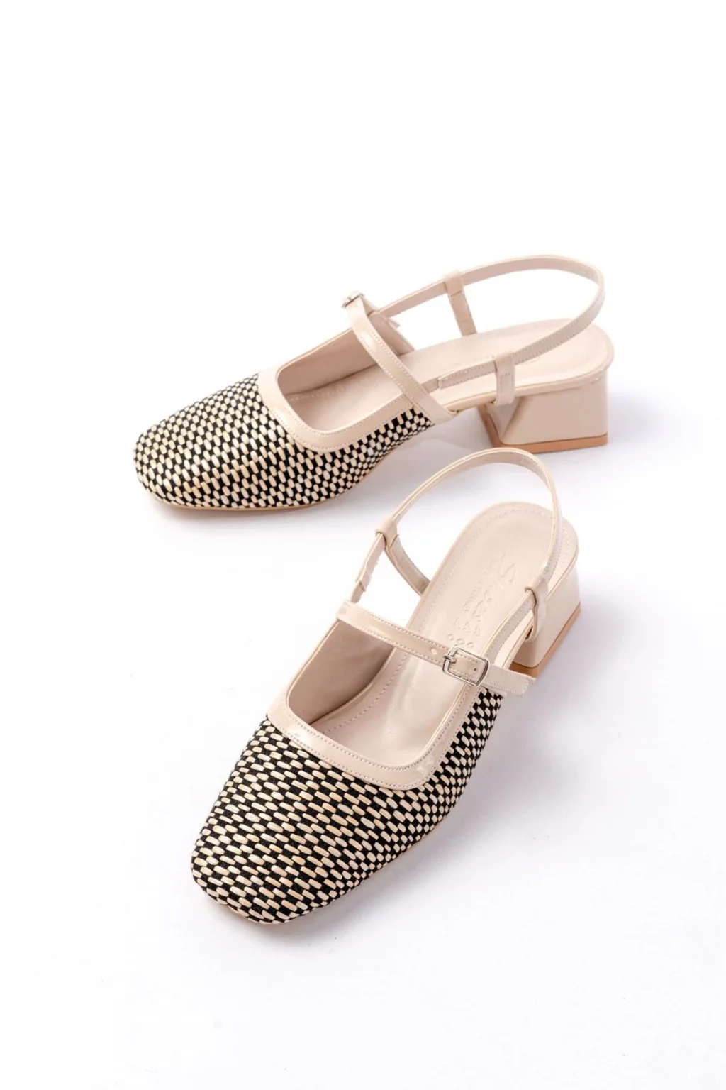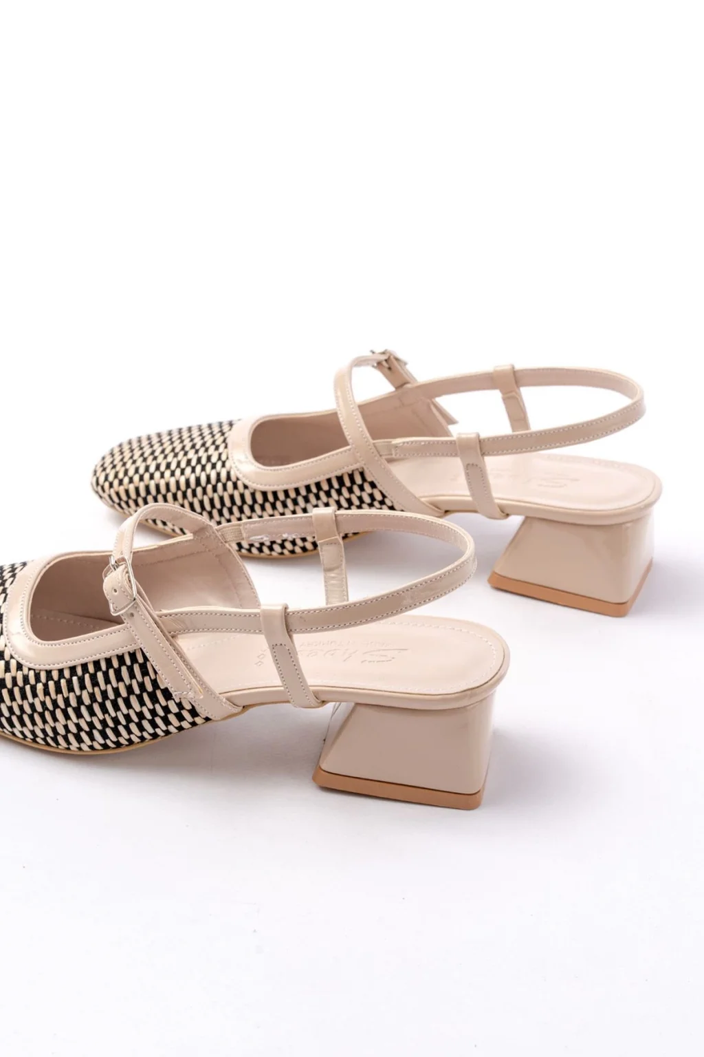 Toran Beyaz Rugan Siyah Süet Detaylı Topuklu Ayakkabı