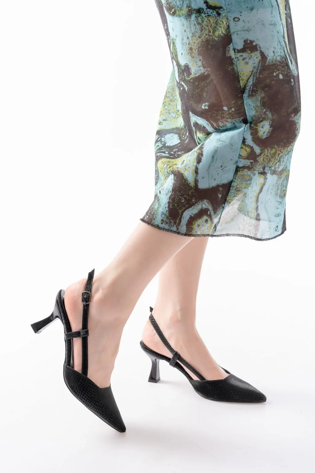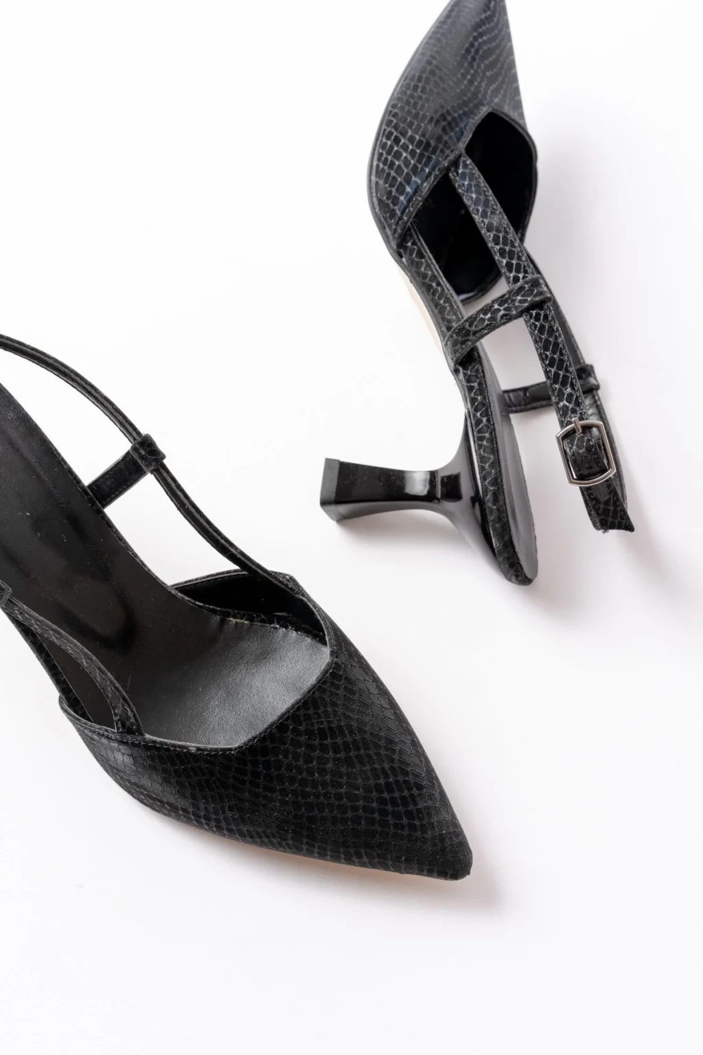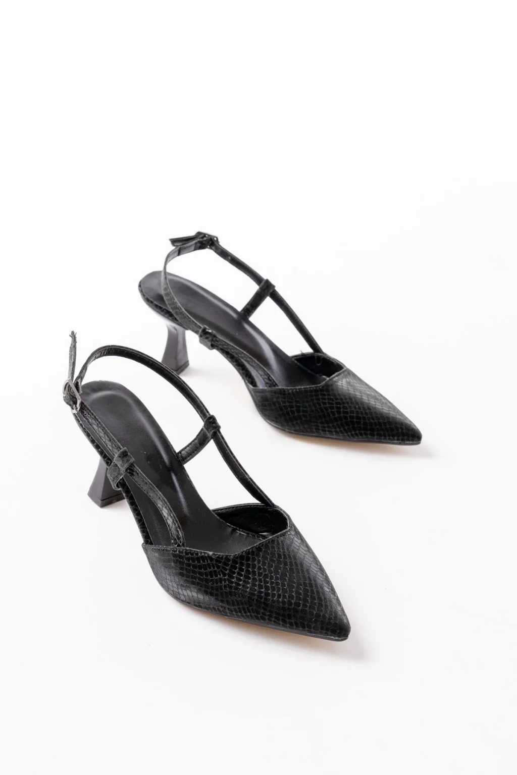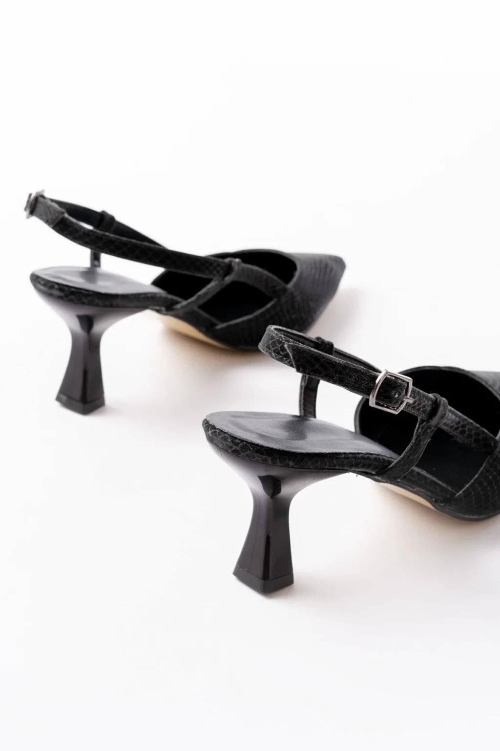 Lanina Siyah Cilt Topuklu Ayakkabı