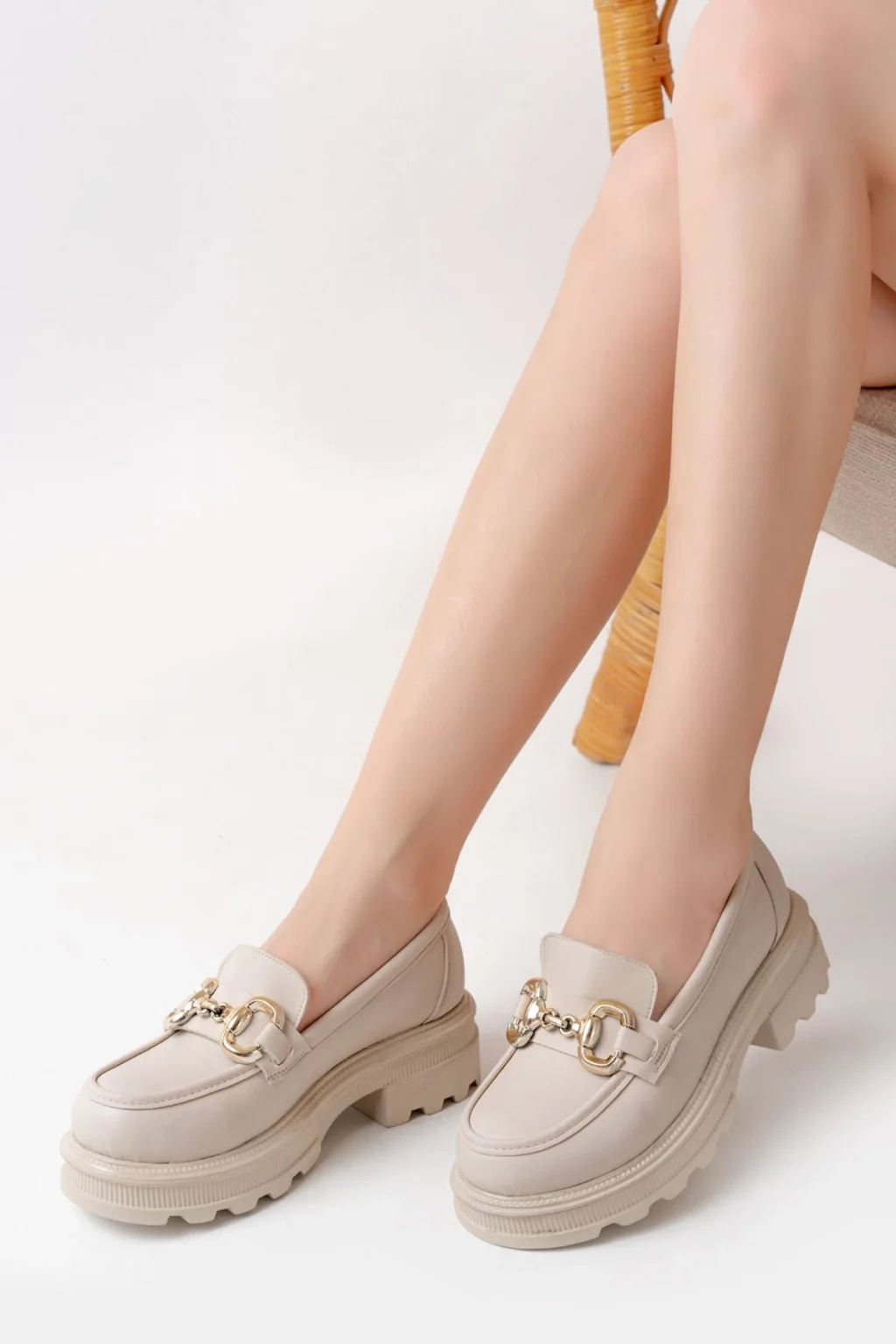 Emwa Bej Cilt Bağcıklı Spor Ayakkabı