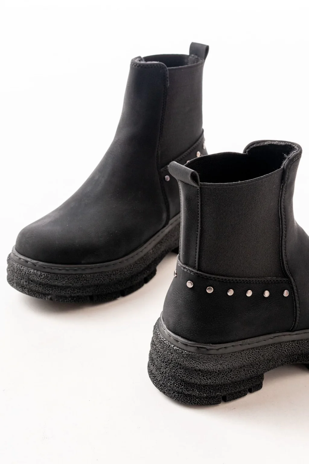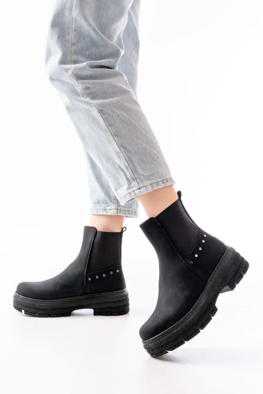 02-02 Siyah Taş Aksesuarlı Lastikli Günlük Kadın Bot