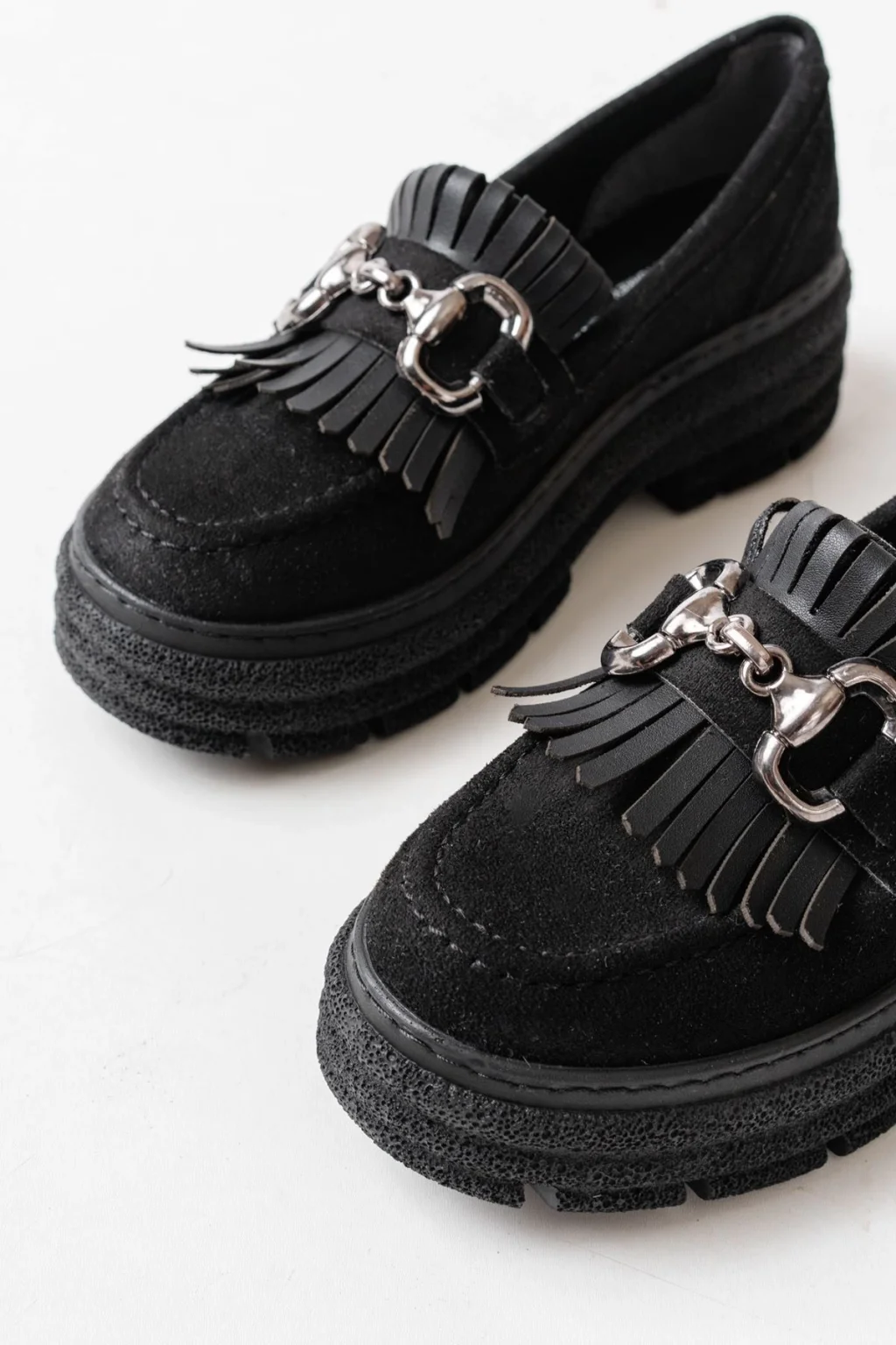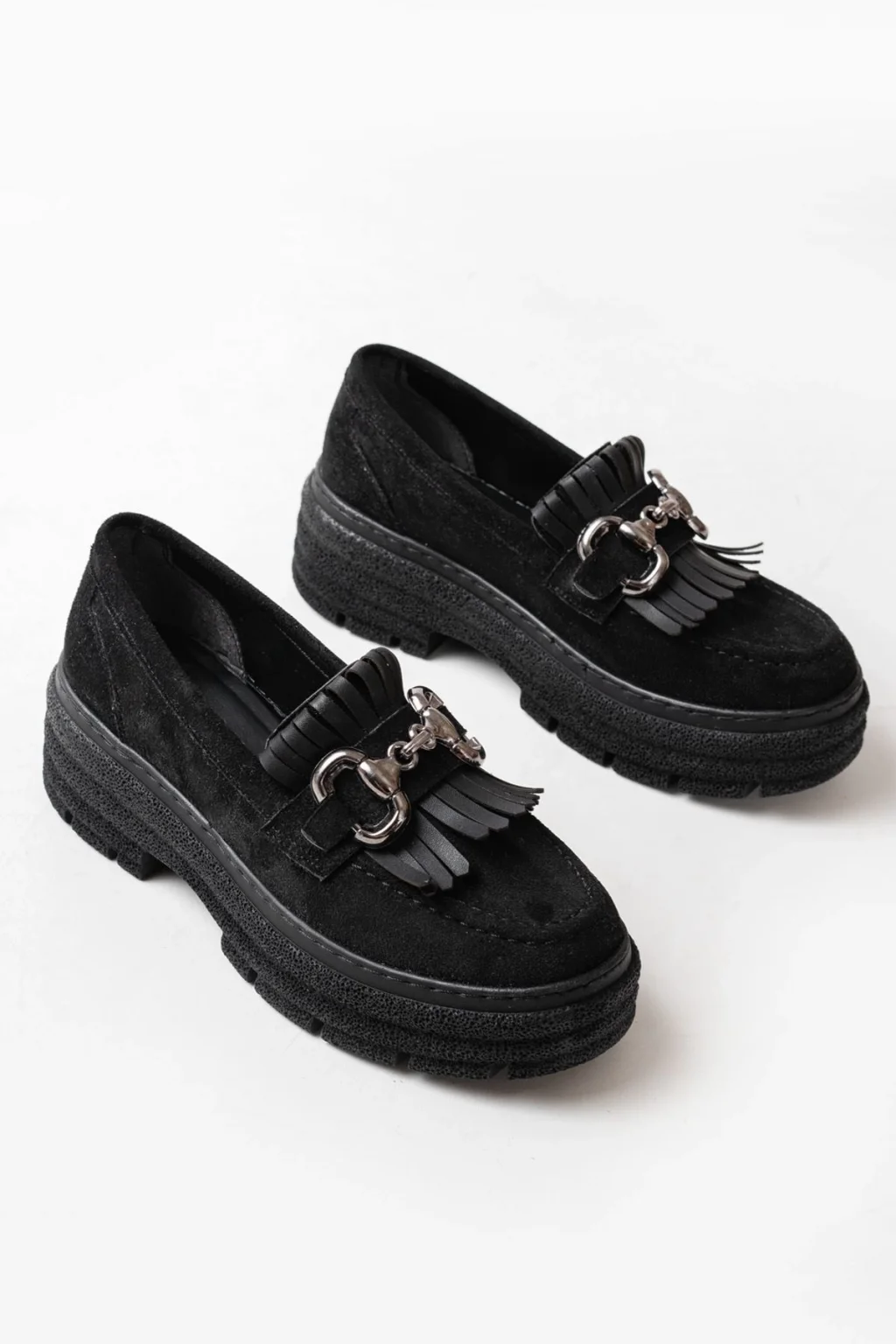 Natte Siyah Cilt Bağcıklı Spor Ayakkabı