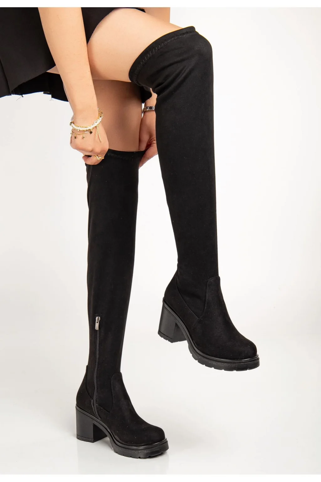 Zelya Siyah Süet Topuklu Çizme