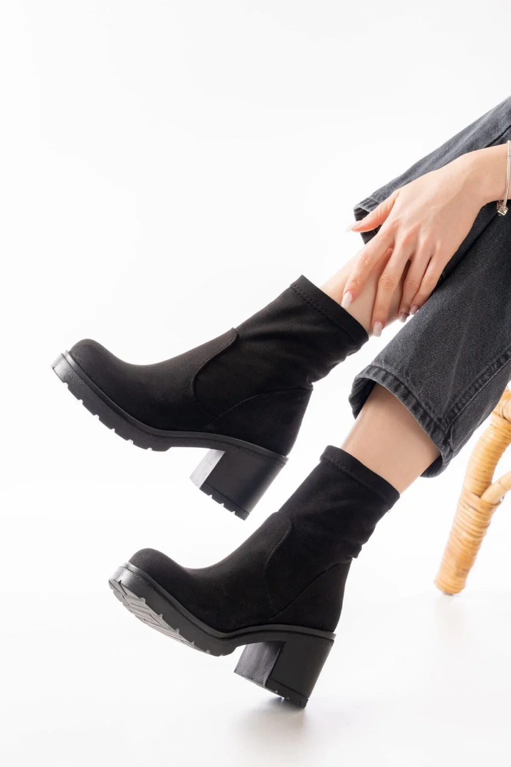 02-02 Siyah Süet Taş Aksesuarlı Lastikli Günlük Kadın Bot
