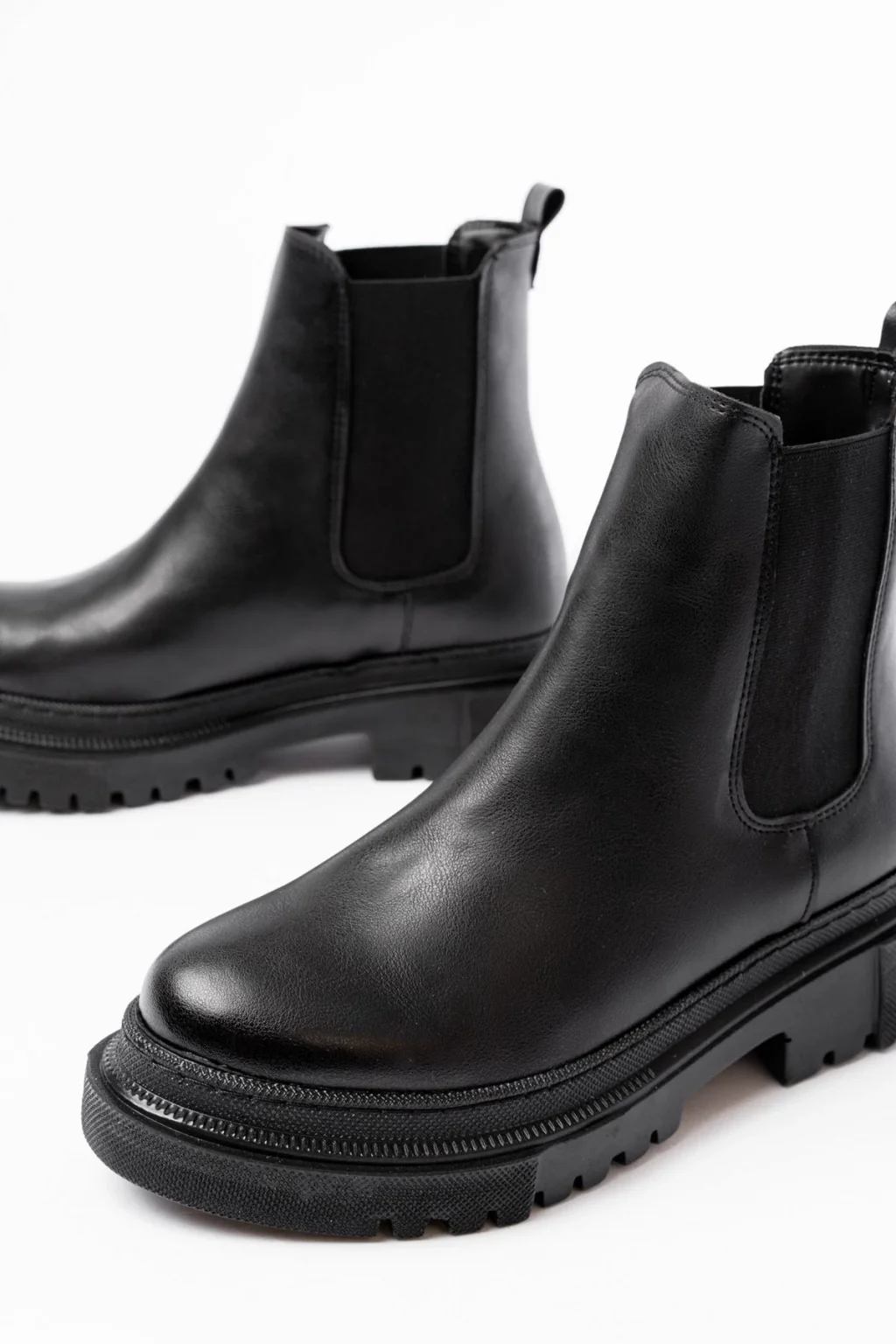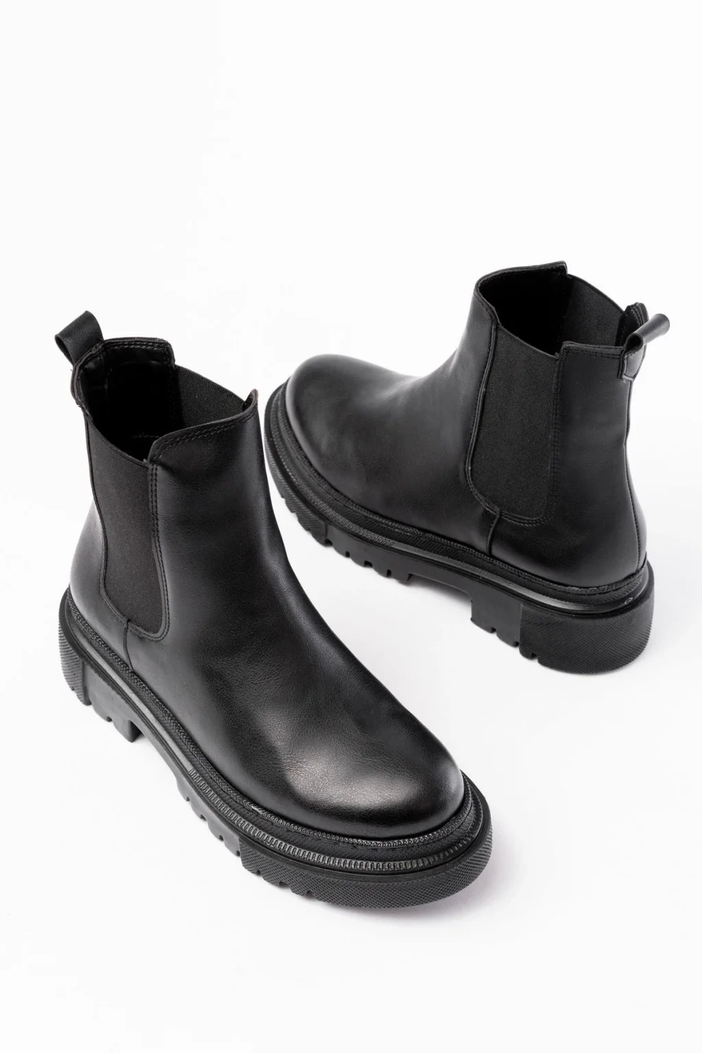 02-02 Siyah Taş Aksesuarlı Lastikli Günlük Kadın Bot