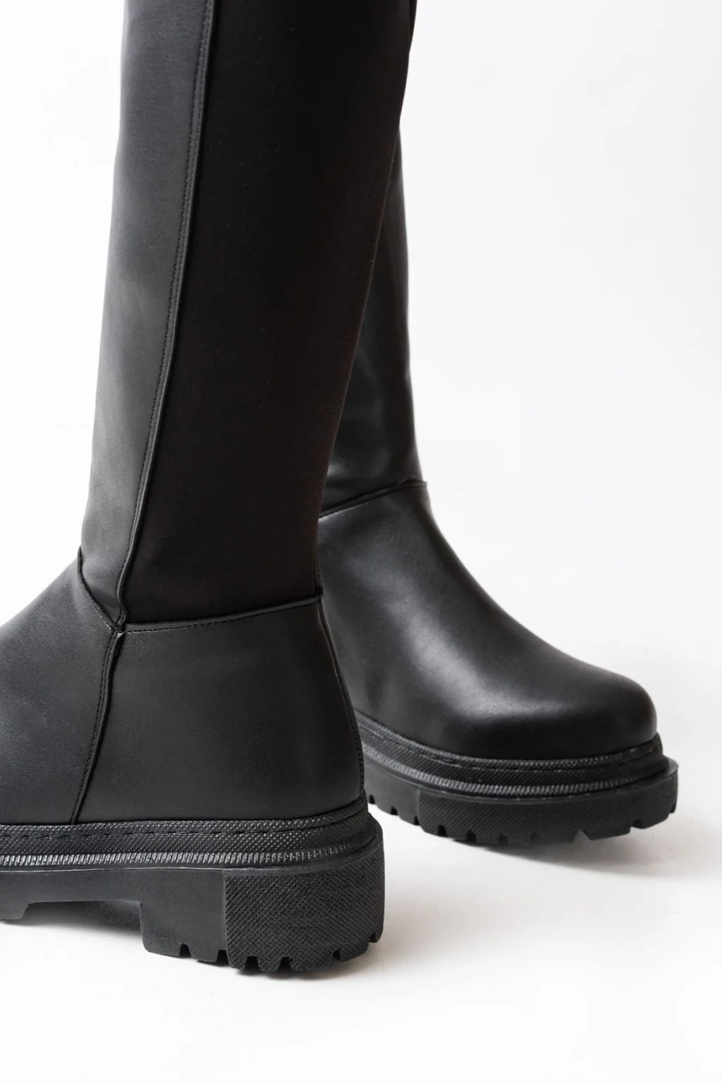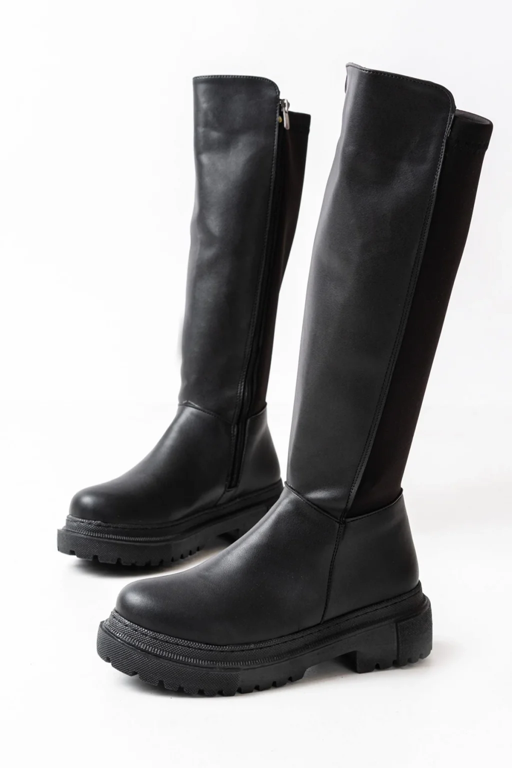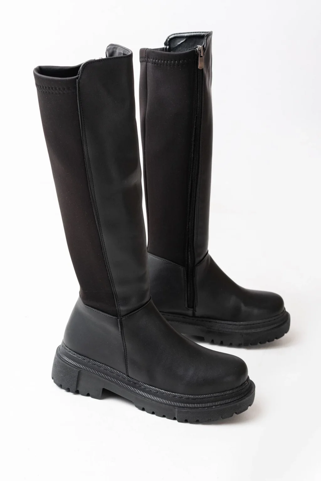 812-2194 Siyah Fermuarlı Diz Üstü Bağcıklı Çorap Günlük Kadın Çizme