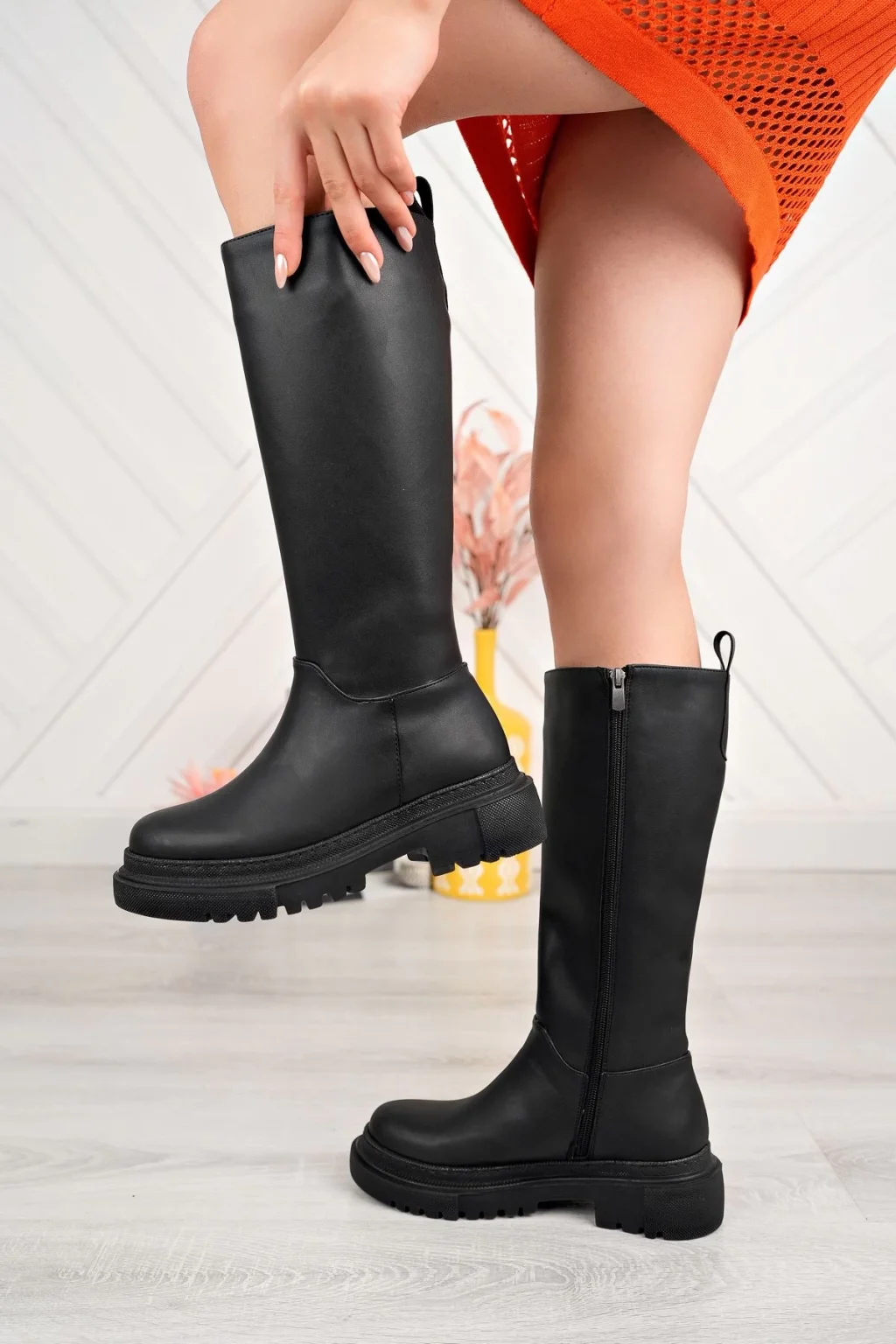 02-312 Siyah Toka Aksesuarlı Fermuarlı Günlük Kadın Çizme