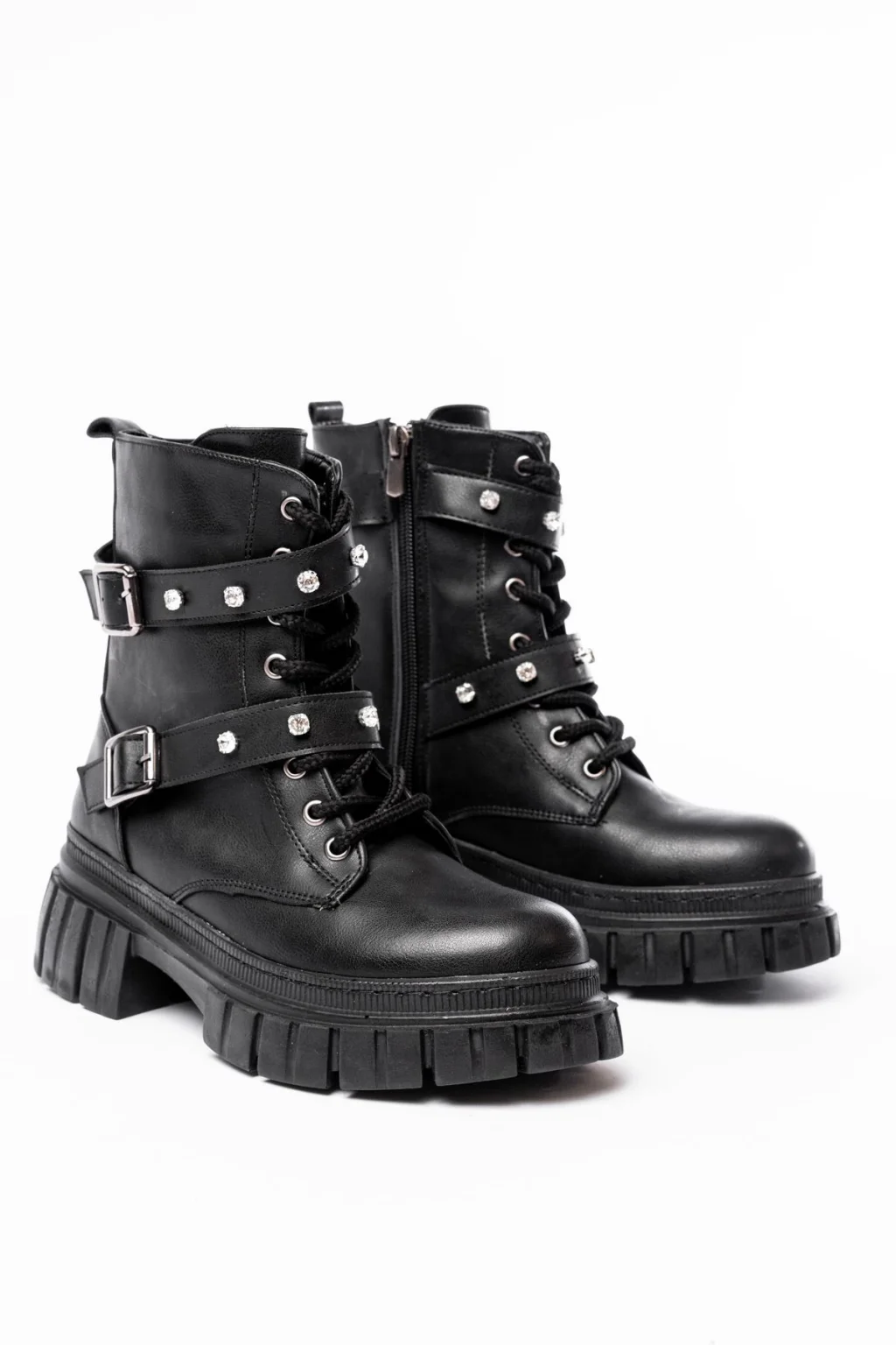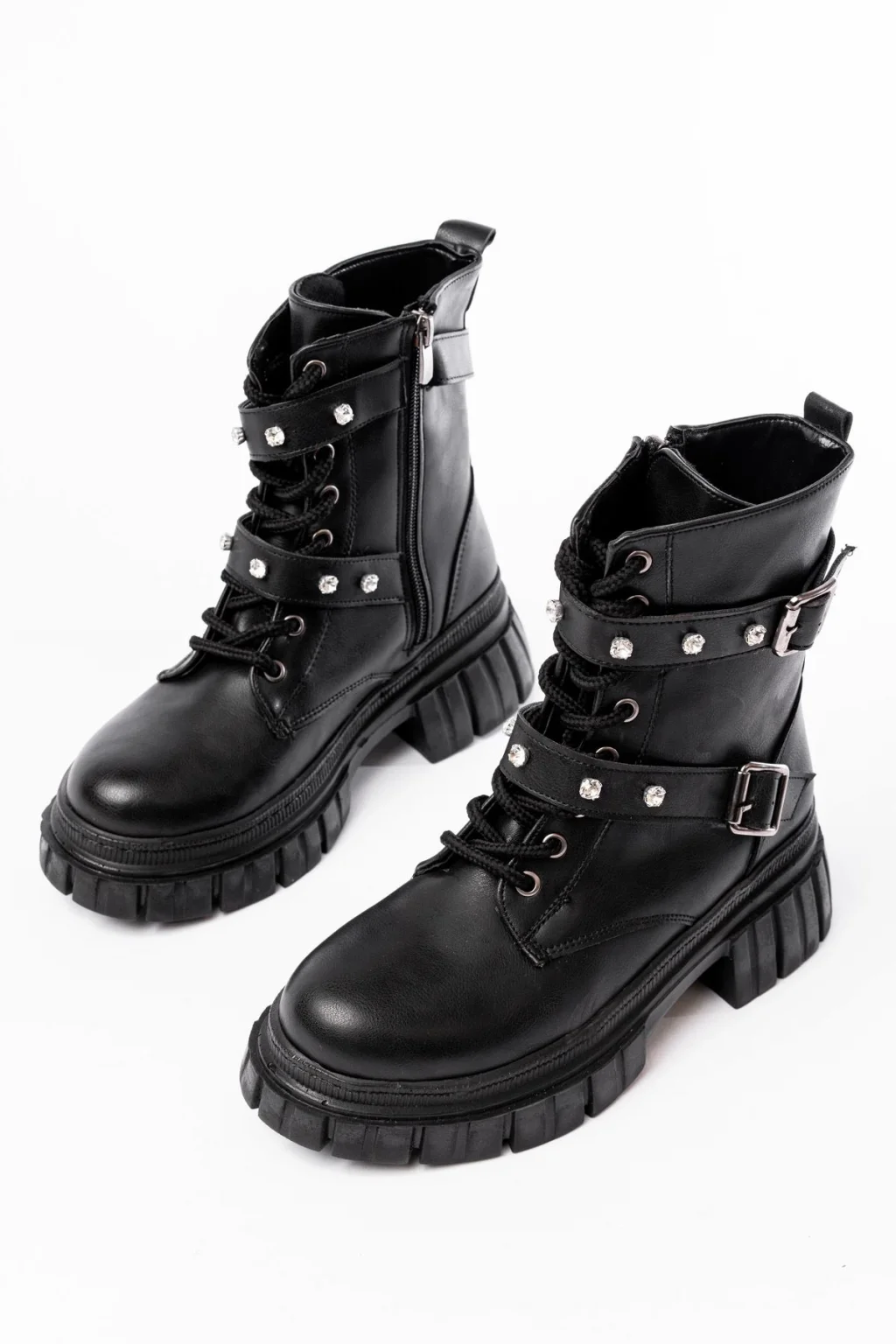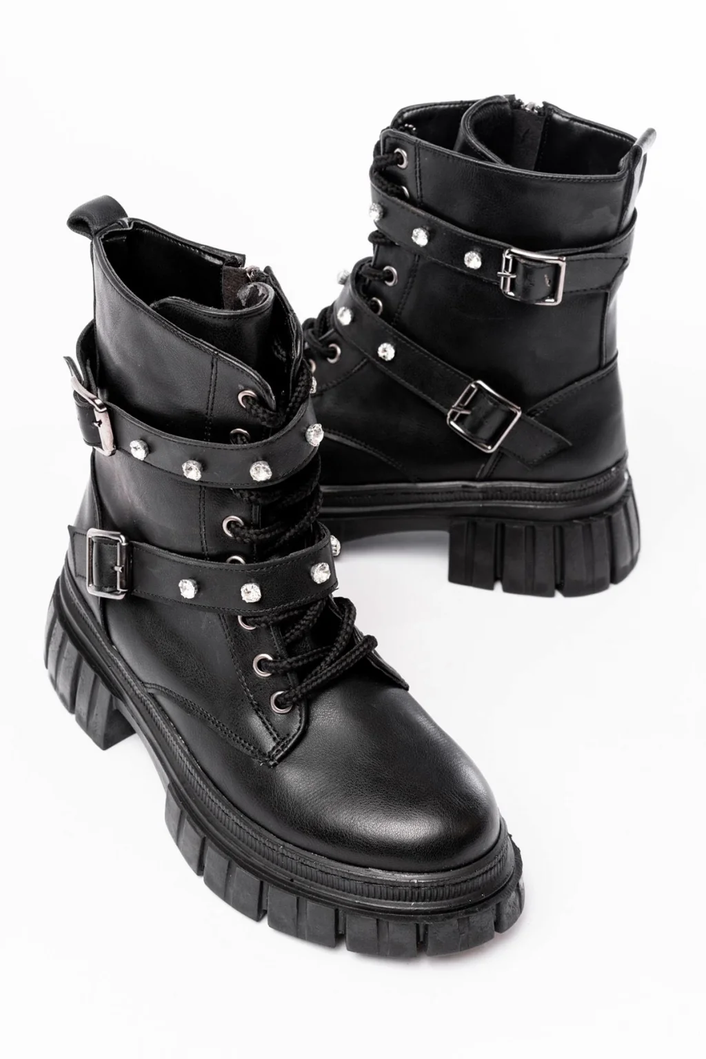 02-02 Siyah Taş Aksesuarlı Lastikli Günlük Kadın Bot