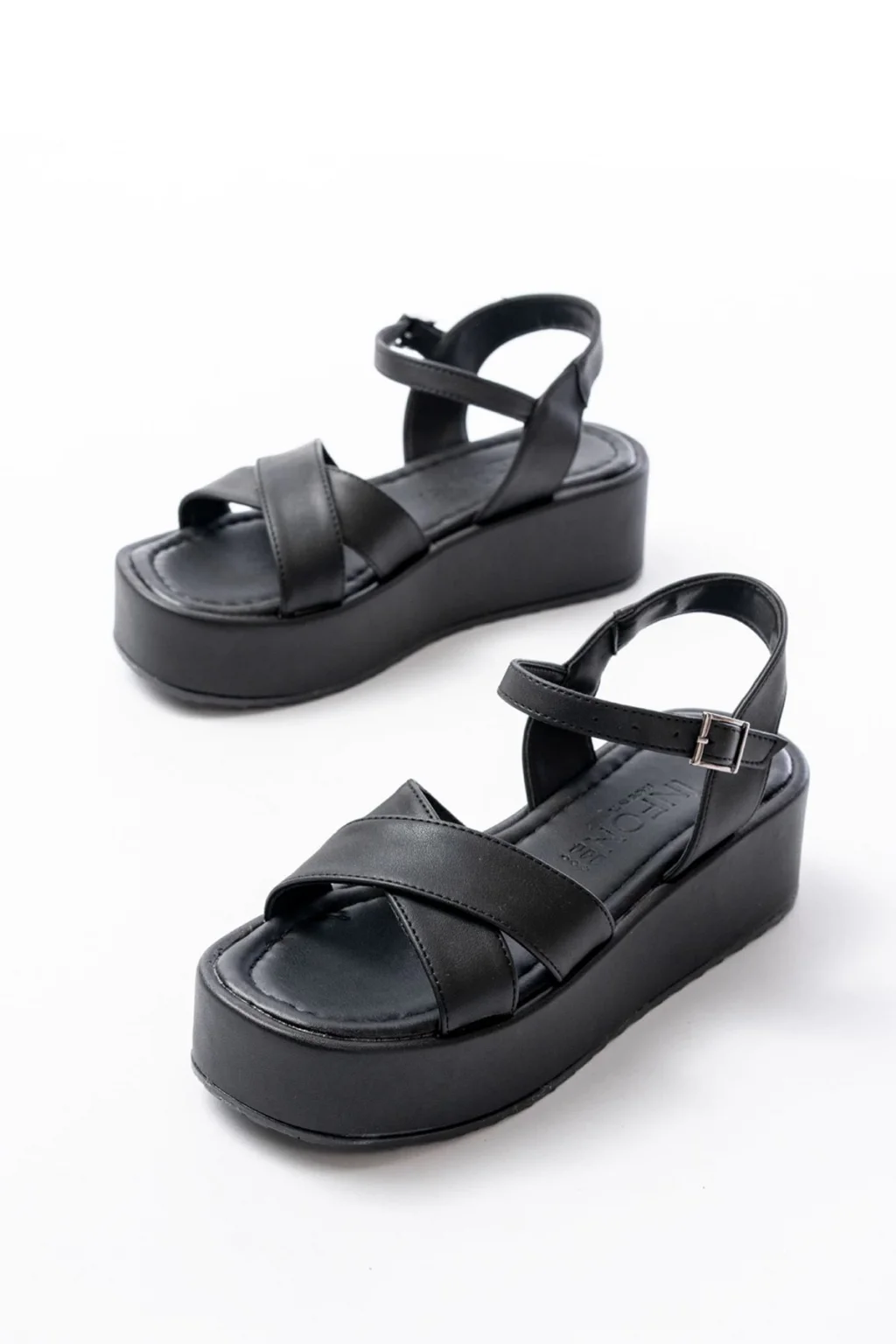 Wayi Siyah Hasır Cilt Sandalet