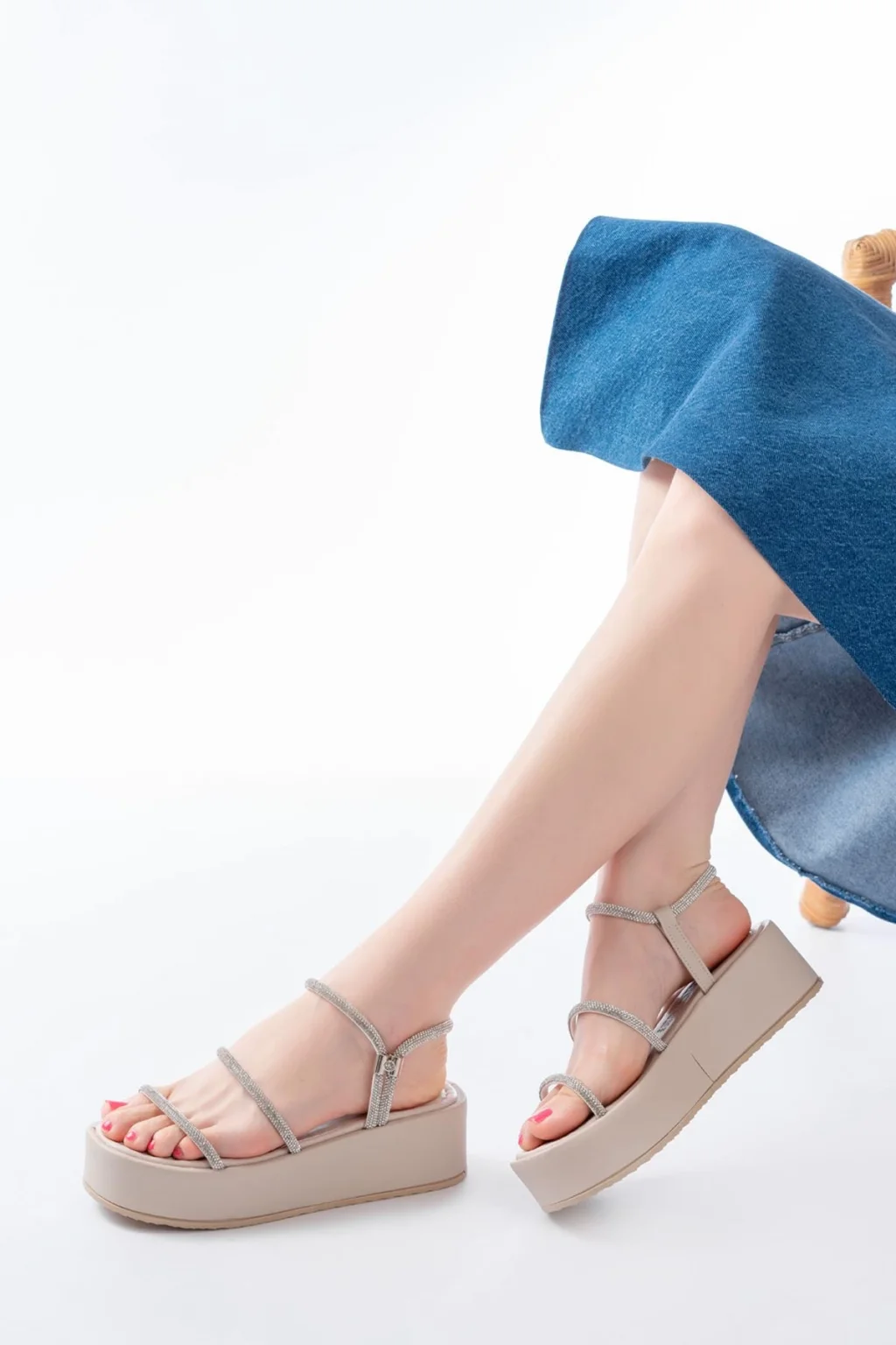 Wayi Bej Hasır Cilt Sandalet