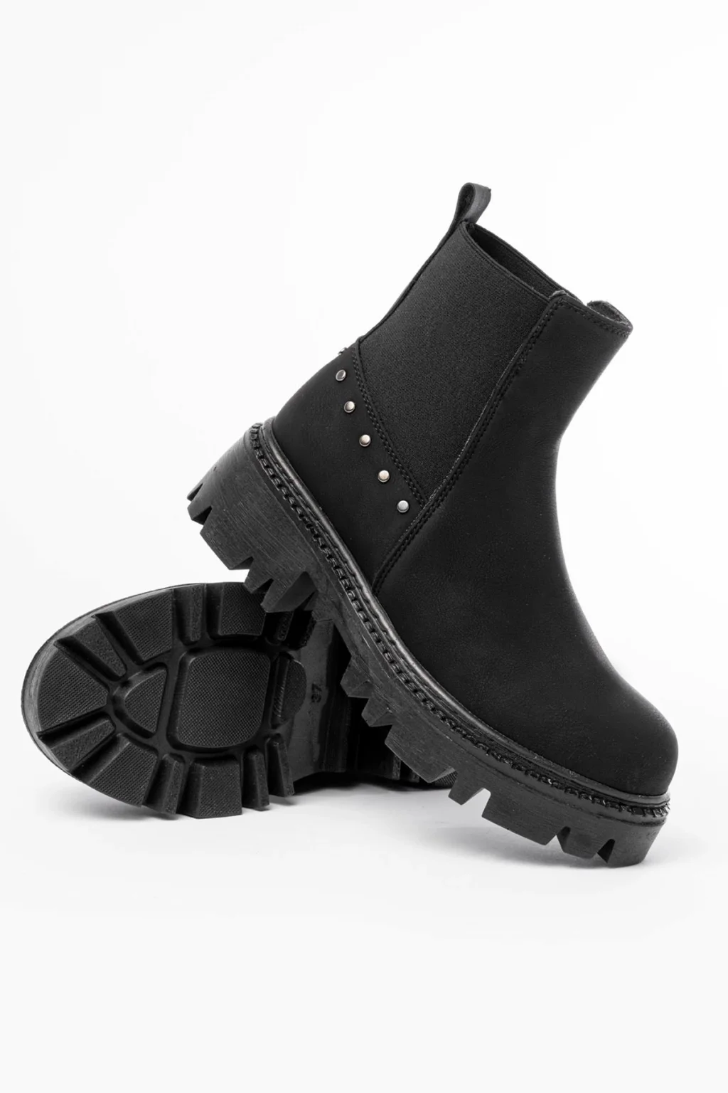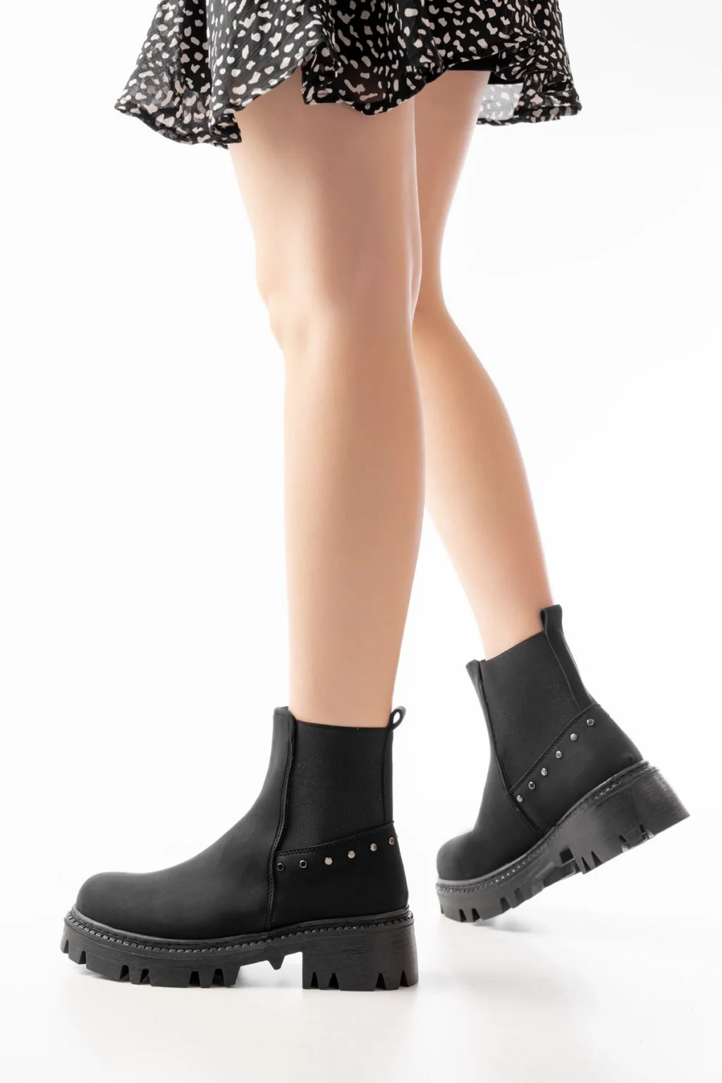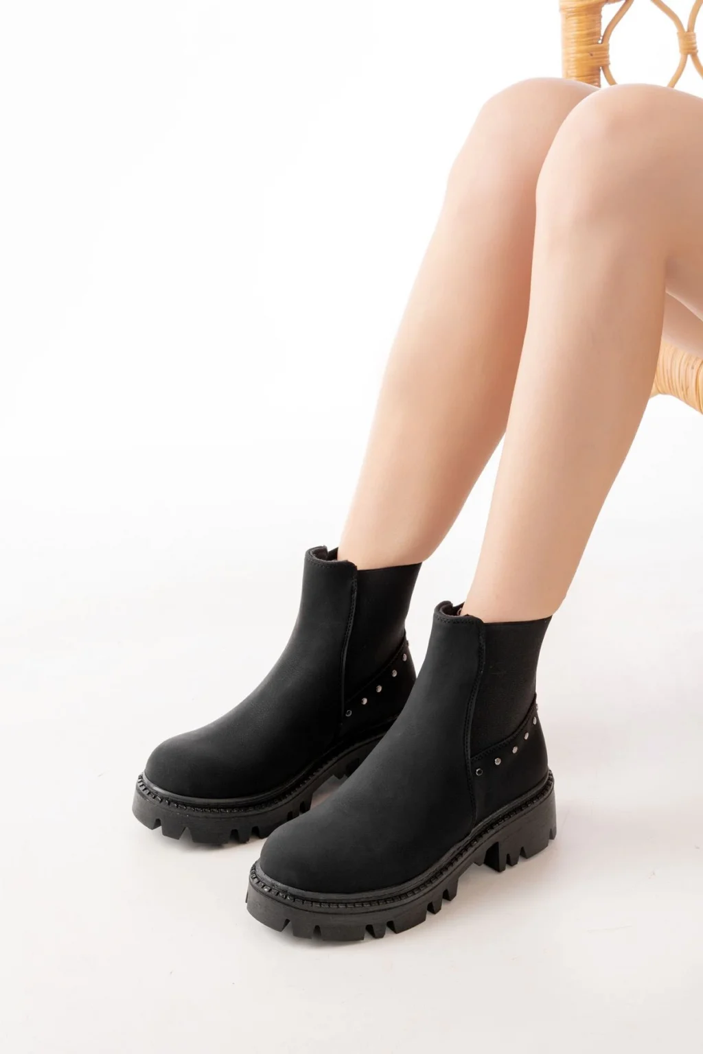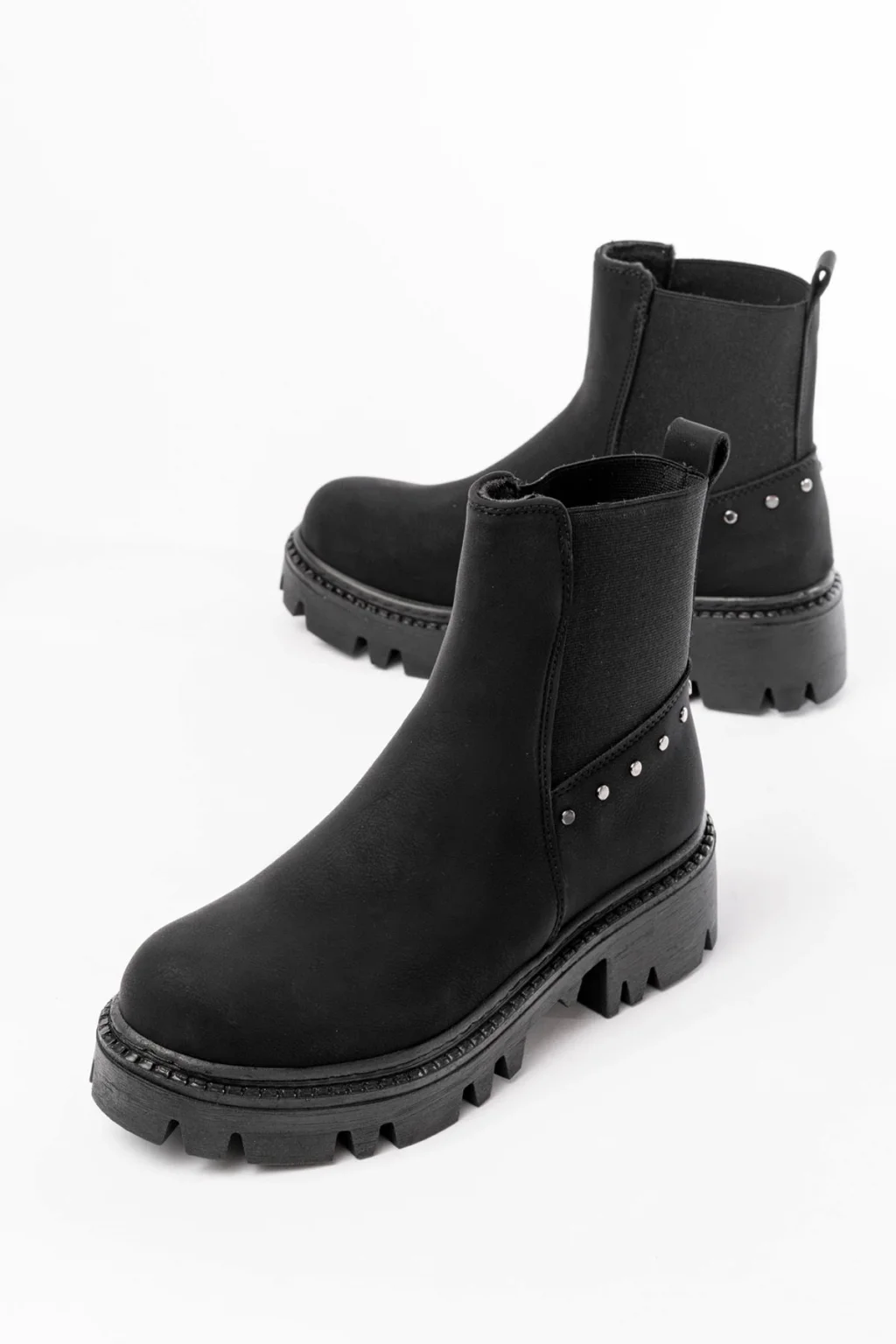 02-02 Siyah Taş Aksesuarlı Lastikli Günlük Kadın Bot