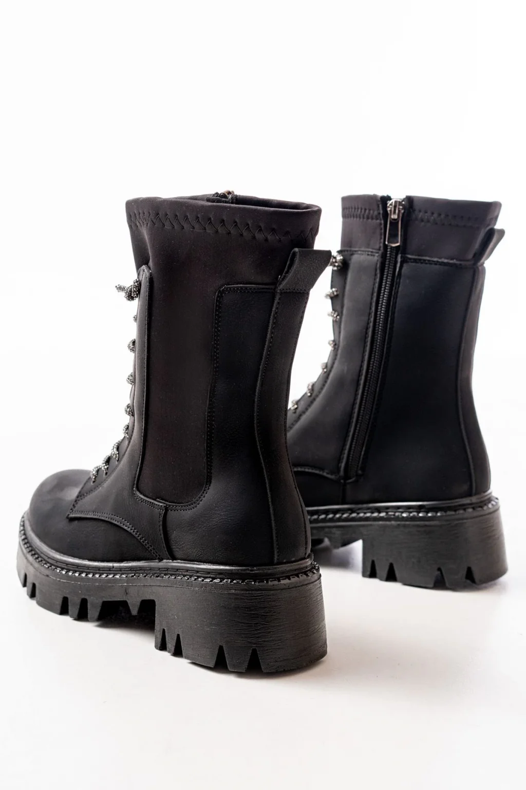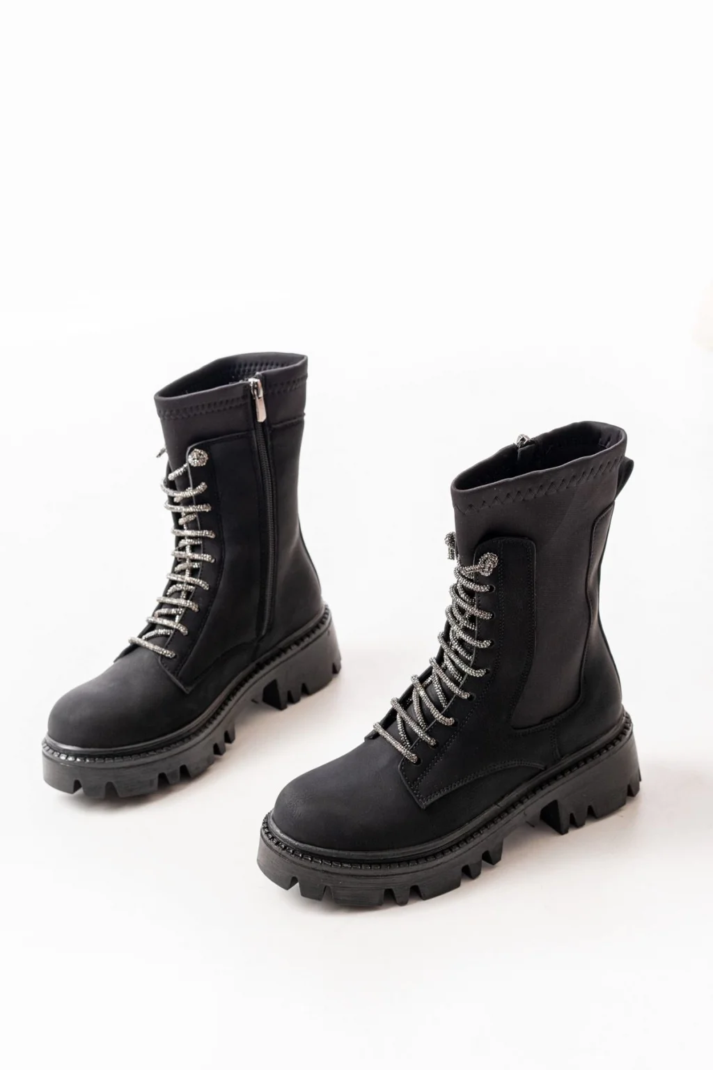 02-02 Siyah Taş Aksesuarlı Lastikli Günlük Kadın Bot