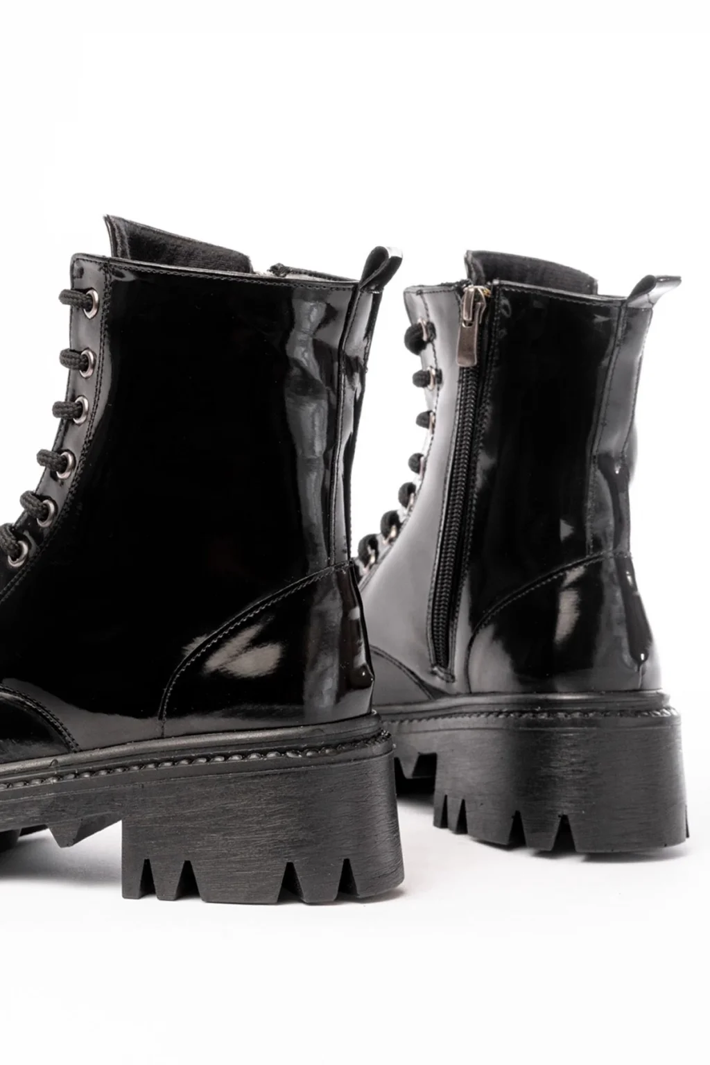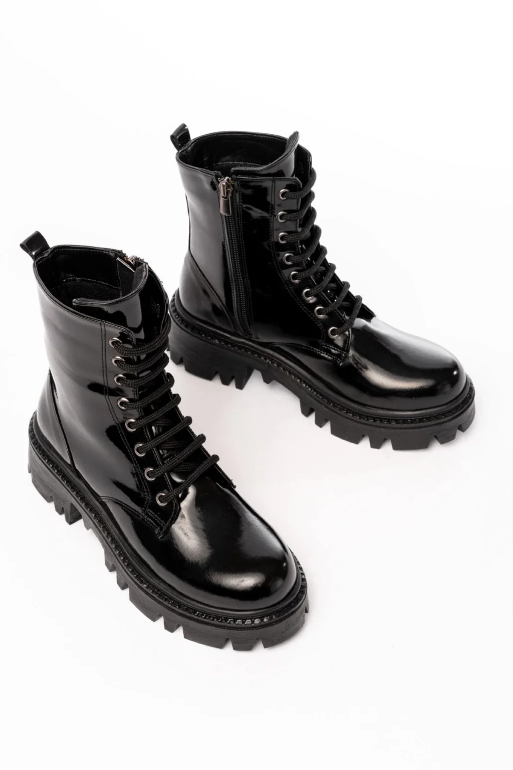 02-02 Siyah Taş Aksesuarlı Lastikli Günlük Kadın Bot
