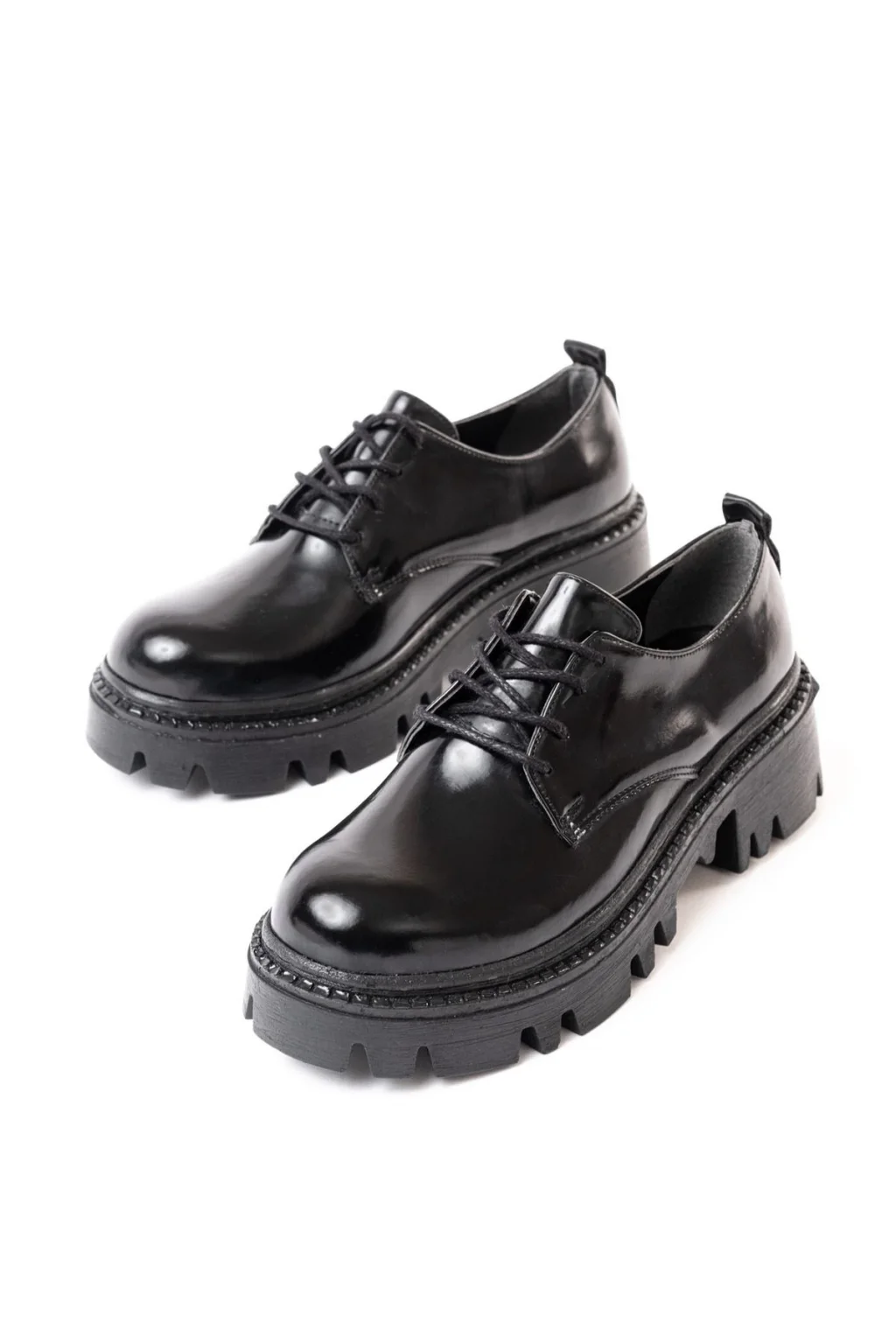 Natte Siyah Cilt Bağcıklı Spor Ayakkabı