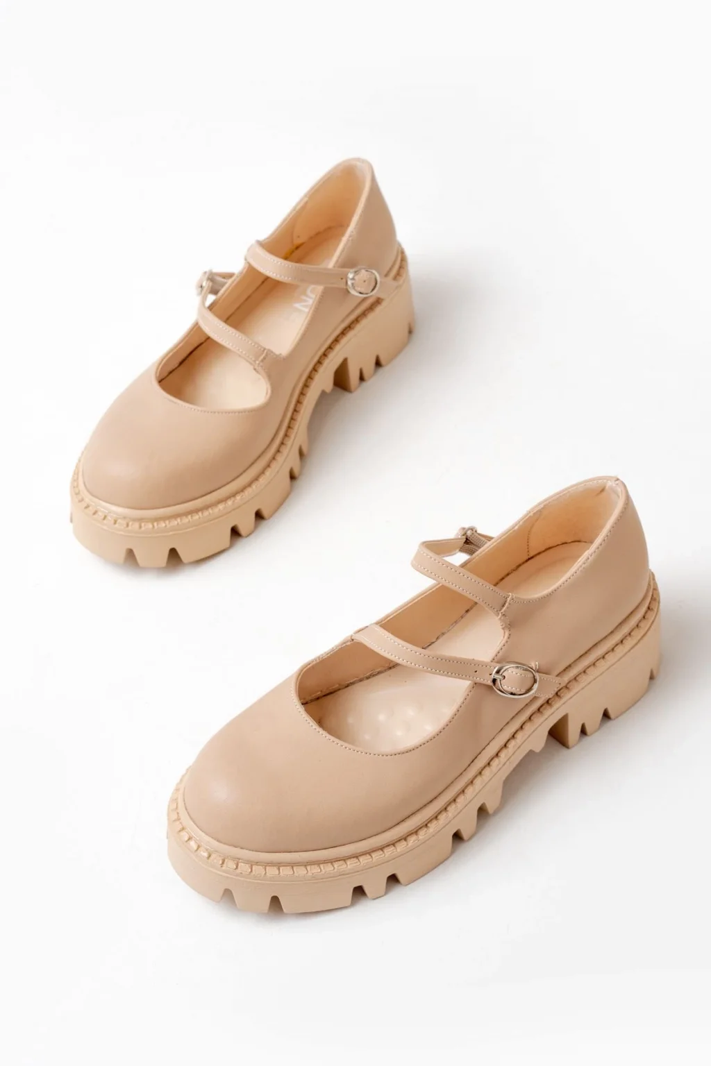 Emwa Bej Cilt Bağcıklı Spor Ayakkabı